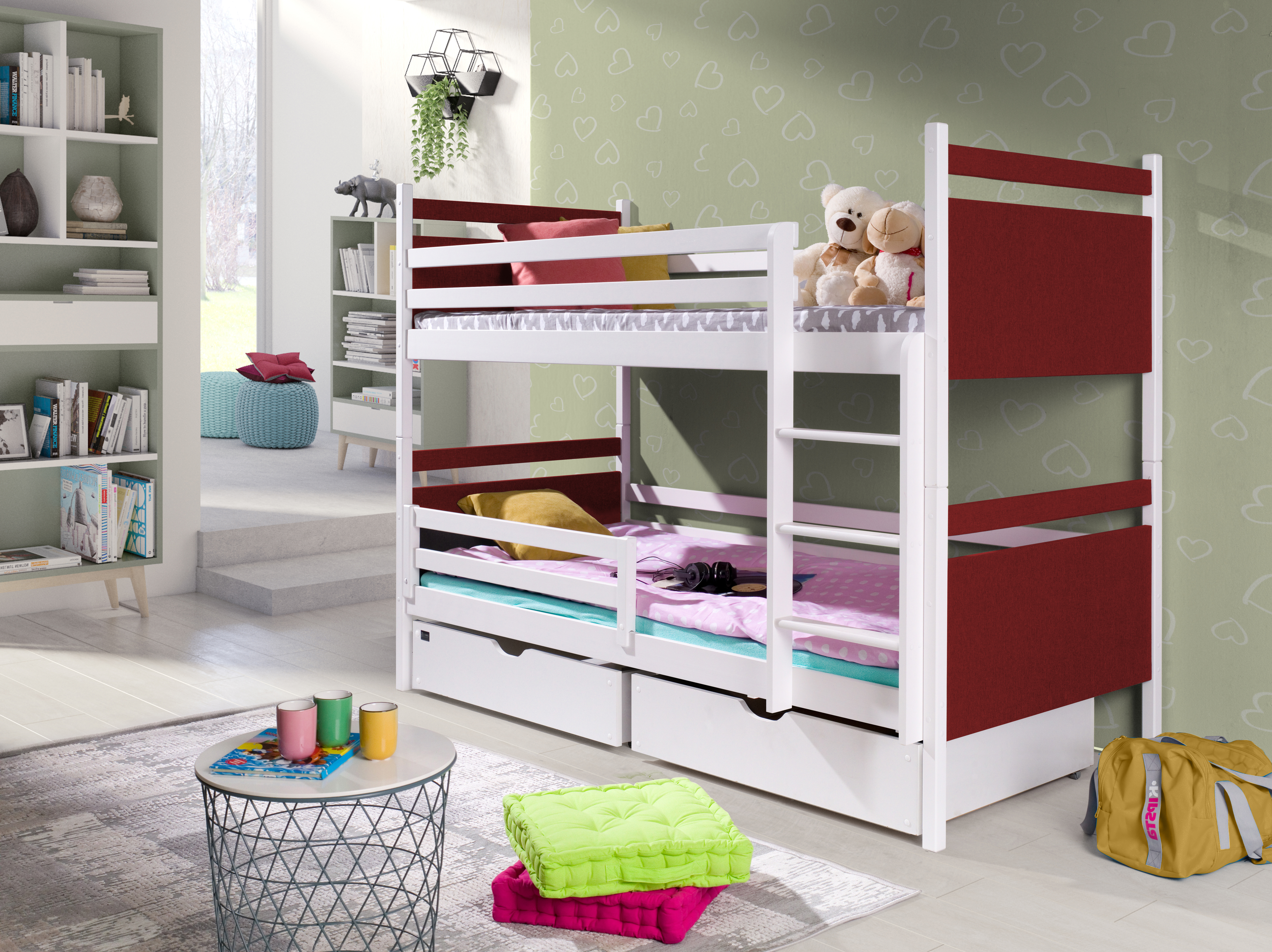 Patul supraetajat Talia este un plus excelent pentru o cameră pentru copii. Patul superior și inferior sunt asigurate cu bariere care împiedică căderea în timpul somnului. Este fabricat din scânduri de lemn, cu margini finisate astfel încât să nu reprezinte un pericol pentru copii. Vopselele și lacurile utilizate îndeplinesc toate standardele necesare. Patul conține și spațiu de depozitare cu roți cauciucate, pentru a proteja podeaua.