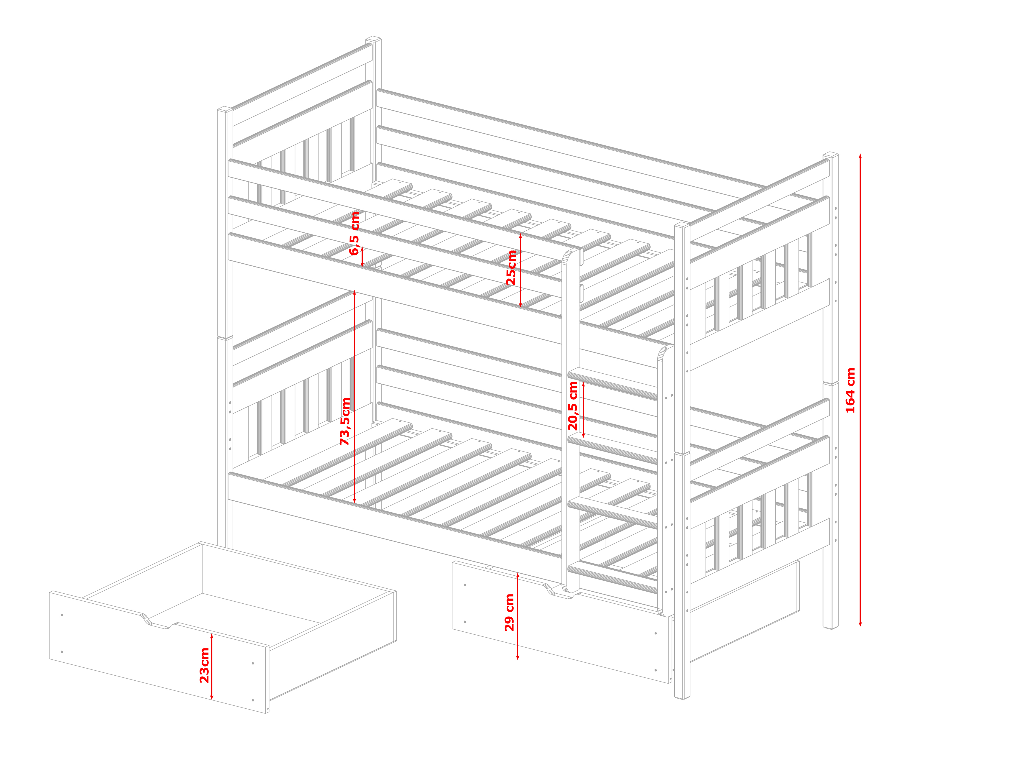 Patul Aras fabricat din lemn de pin, este potrivit pentru camera de copii. Conține bare de protecție pentru siguranța copilului în timpul somnului. Conține spațiu de depozitare sub forma a două sertare, cu roți din cauciuc pentru a proteja podeaua.