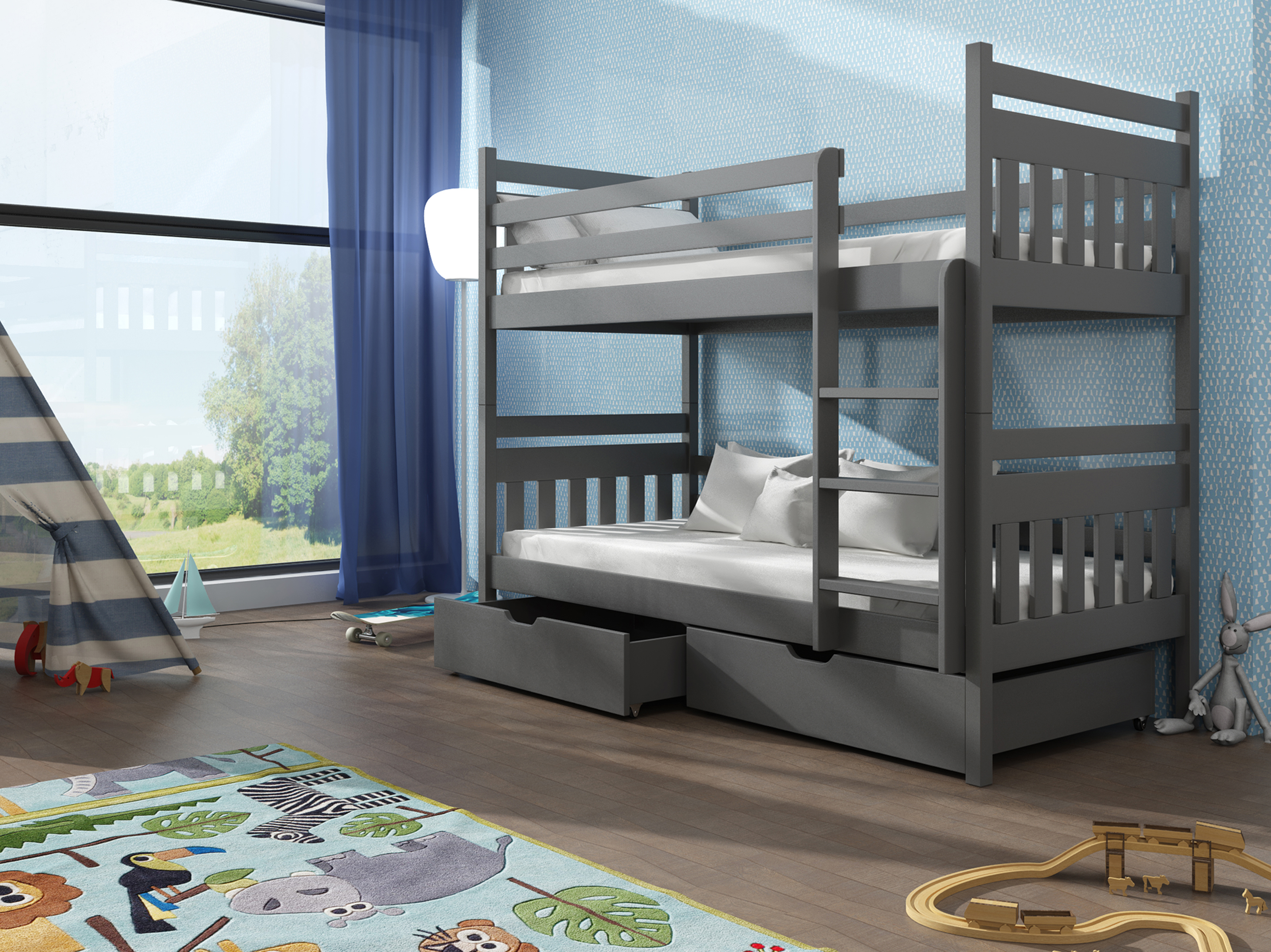 Pat pentru copii 80 x 180 cm ARAS (cu somieră și sp. depozitare) (grafit)