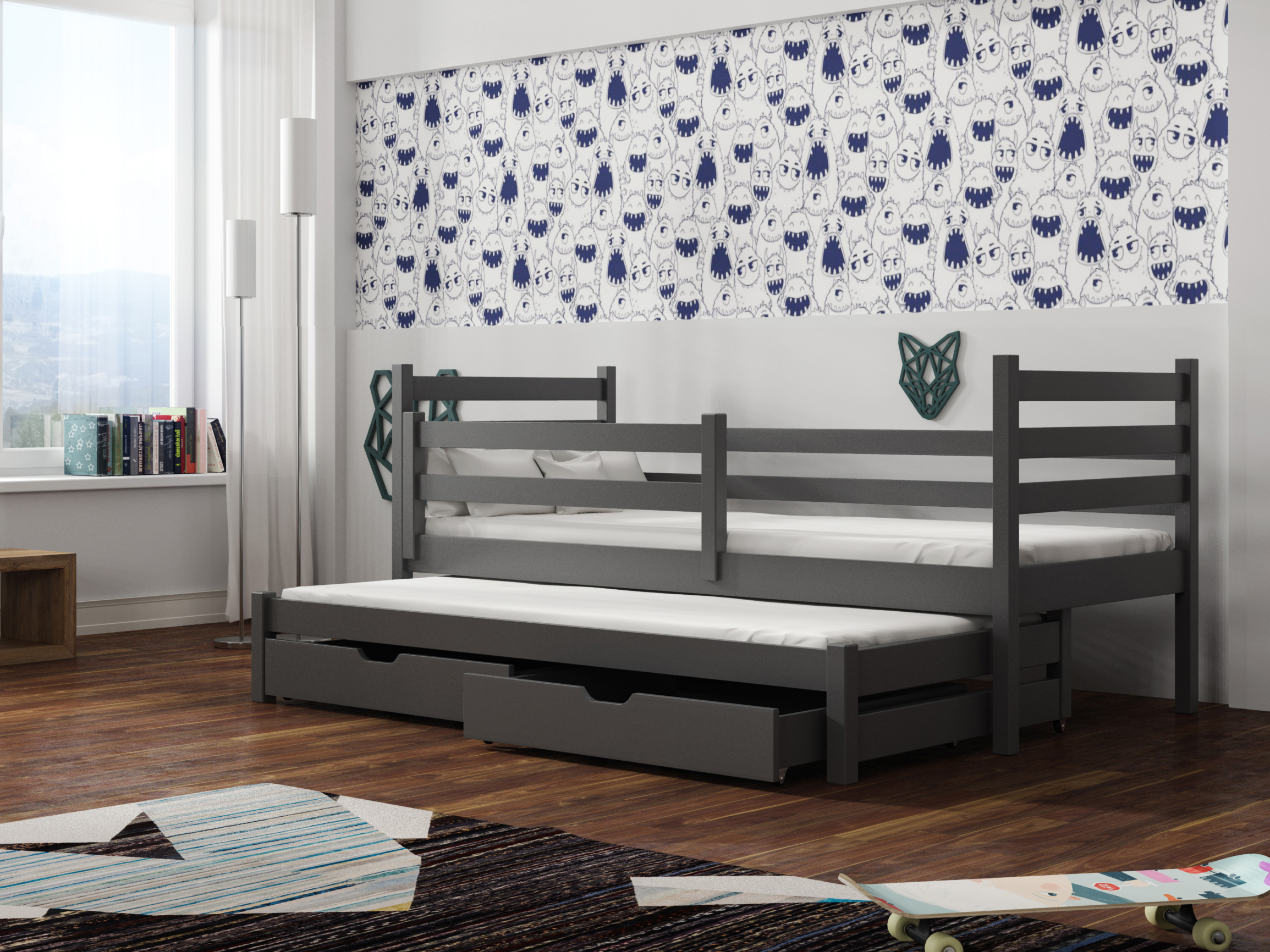 Pat pentru copii 80 x 180 cm MONTY (cu somieră și sp. depozitare) (grafit)