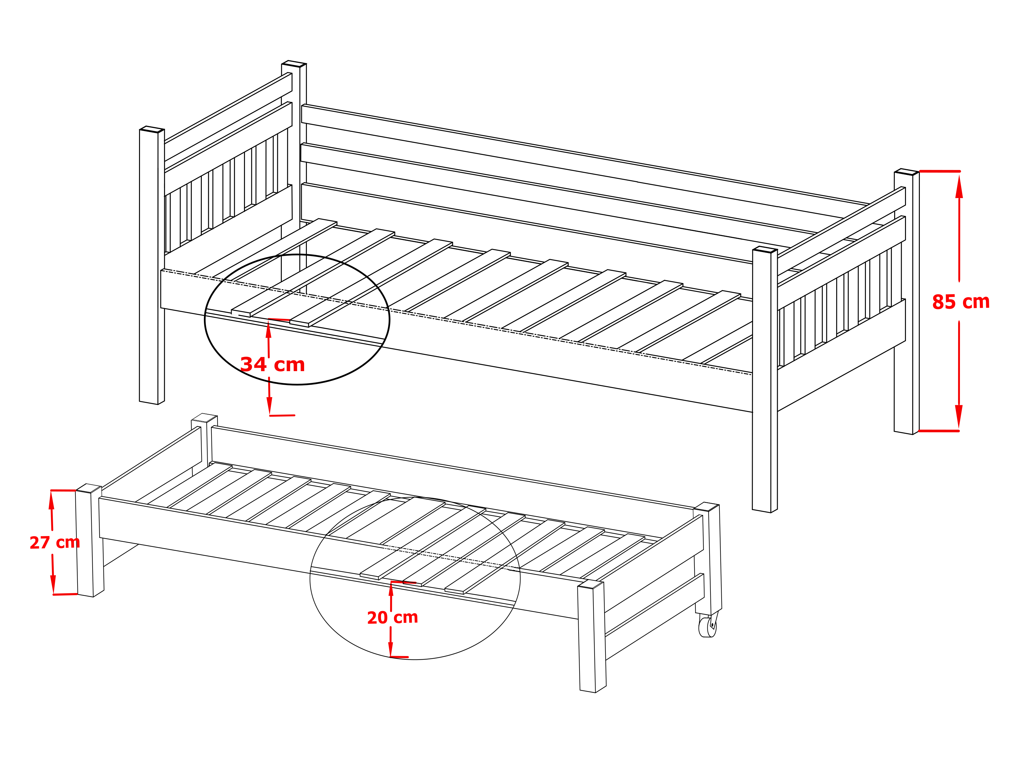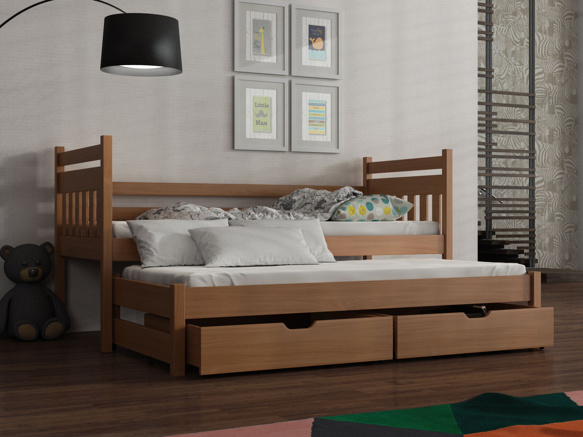 Pat pentru copii 90 cm DANNY (cu somieră și sp. de depozitare) (fag)