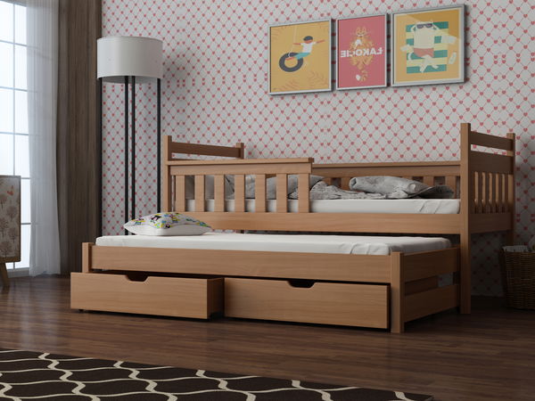 Pat pentru copii 90 cm DORIA (cu somieră și sp. de depozitare) (fag)