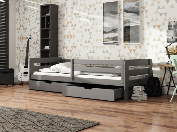 Pat pentru copii 90 cm Erin (cu somieră și sp. de depozitare) (grafit) *vânzare stoc