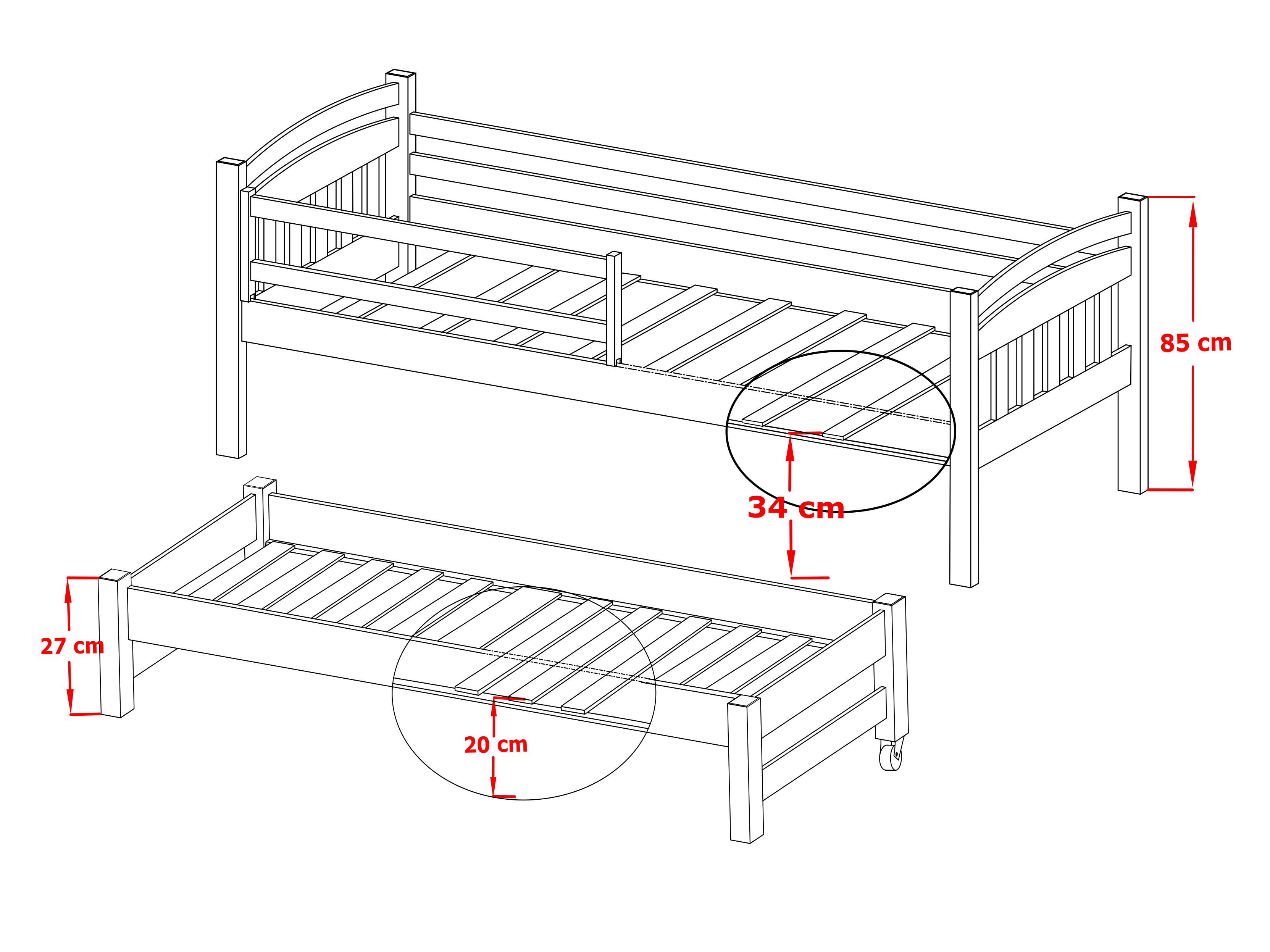 Salteaua pentru patul extensibil este necsar să fie cu 10cm mai scurtă decât salteaua pentru patul superior. Înălțime maximă saltea pentru patul extensibil este de 8 cm.