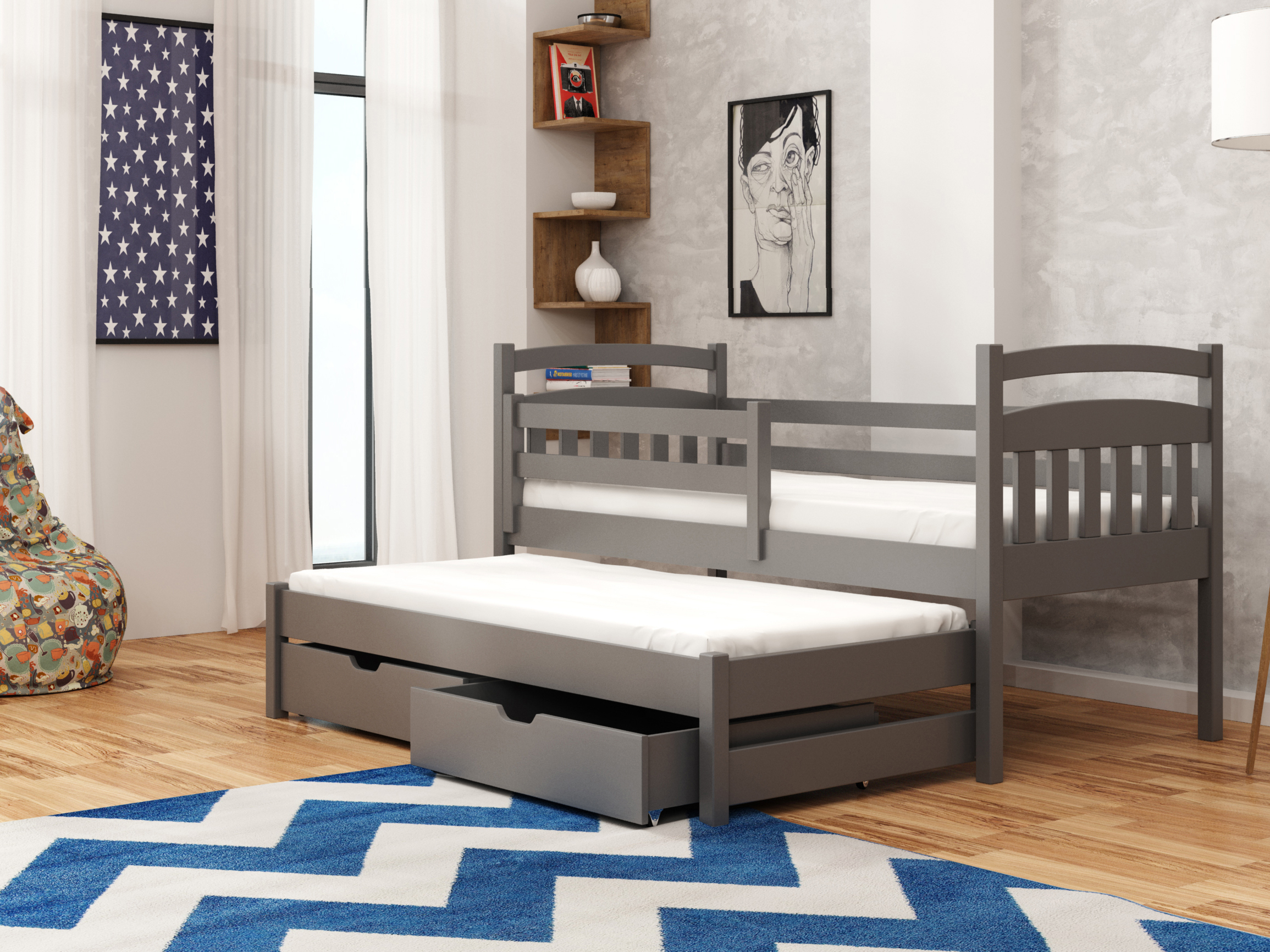 Pat pentru copii 90 cm MADDIE (cu somieră și sp. de depozitare) (grafit)