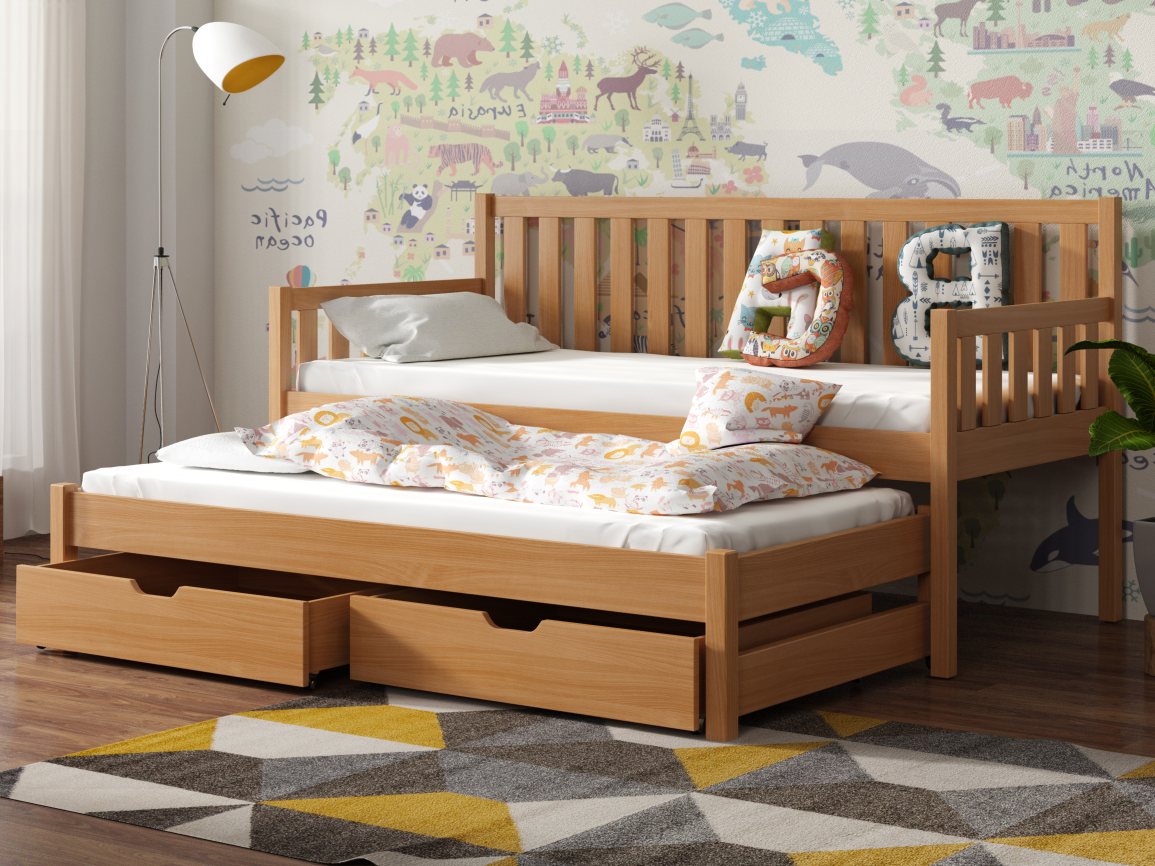 Pat pentru copii 90 cm SUZI (cu somieră și sp. de depozitare) (fag)