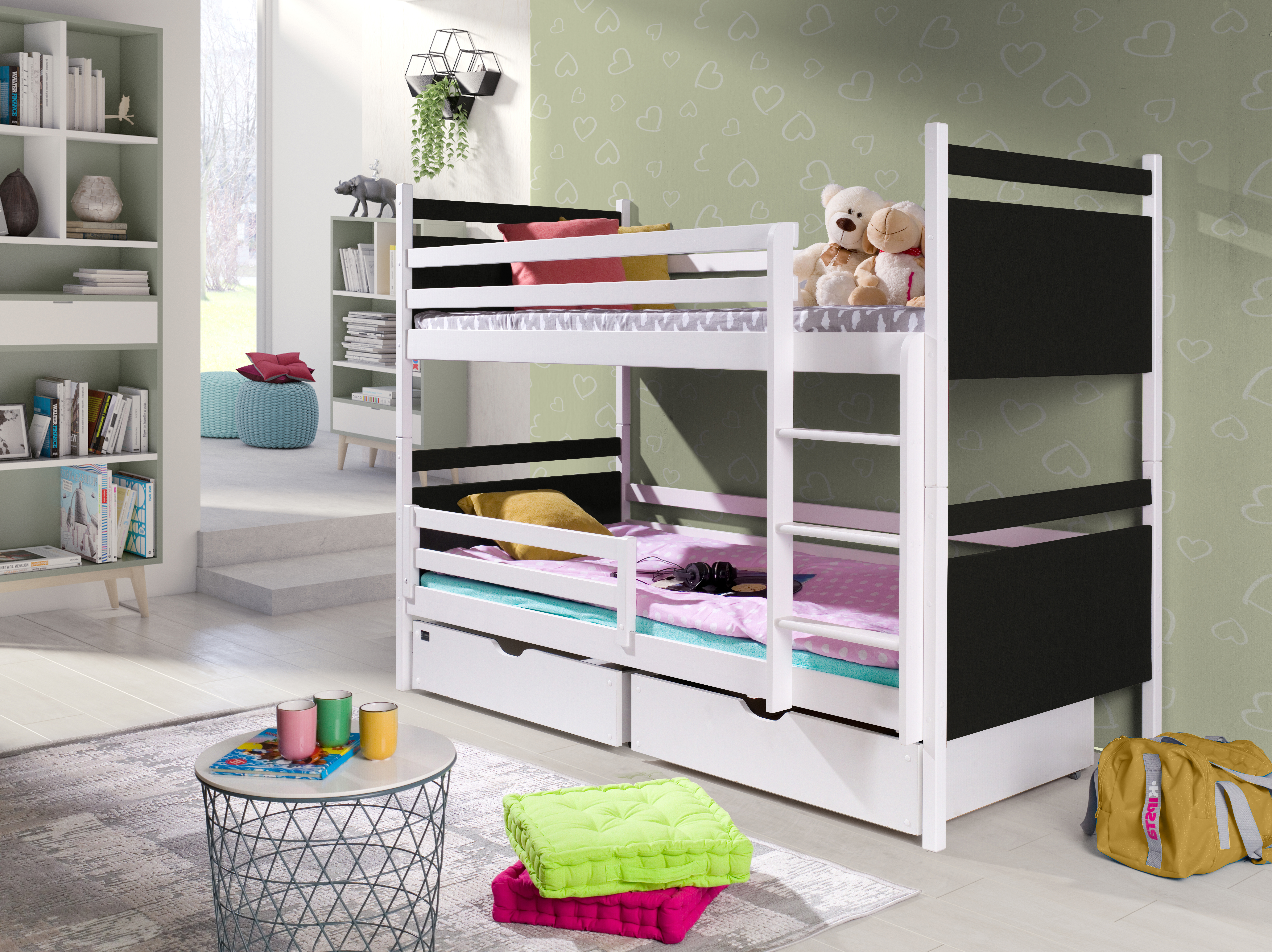Patul supraetajat Talia este un plus excelent pentru o cameră pentru copii. Patul superior și inferior sunt asigurate cu bariere care împiedică căderea în timpul somnului. Este fabricat din scânduri de lemn, cu margini finisate astfel încât să nu reprezinte un pericol pentru copii. Vopselele și lacurile utilizate îndeplinesc toate standardele necesare. Patul conține și spațiu de depozitare cu roți cauciucate, pentru a proteja podeaua.