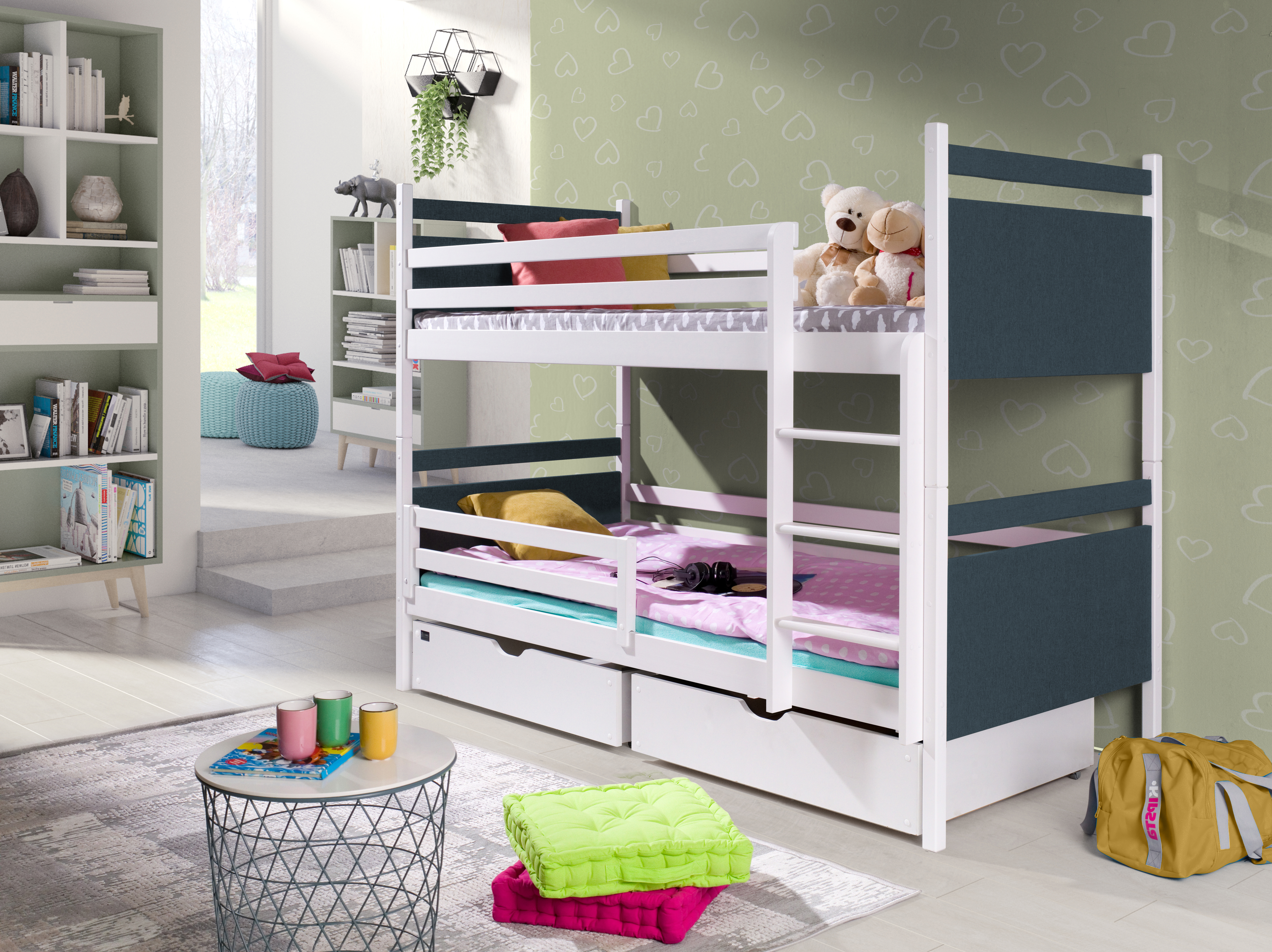 Patul supraetajat Talia este un plus excelent pentru o cameră pentru copii. Patul superior și inferior sunt asigurate cu bariere care împiedică căderea în timpul somnului. Este fabricat din scânduri de lemn, cu margini finisate astfel încât să nu reprezinte un pericol pentru copii. Vopselele și lacurile utilizate îndeplinesc toate standardele necesare. Patul conține și spațiu de depozitare cu roți cauciucate, pentru a proteja podeaua.