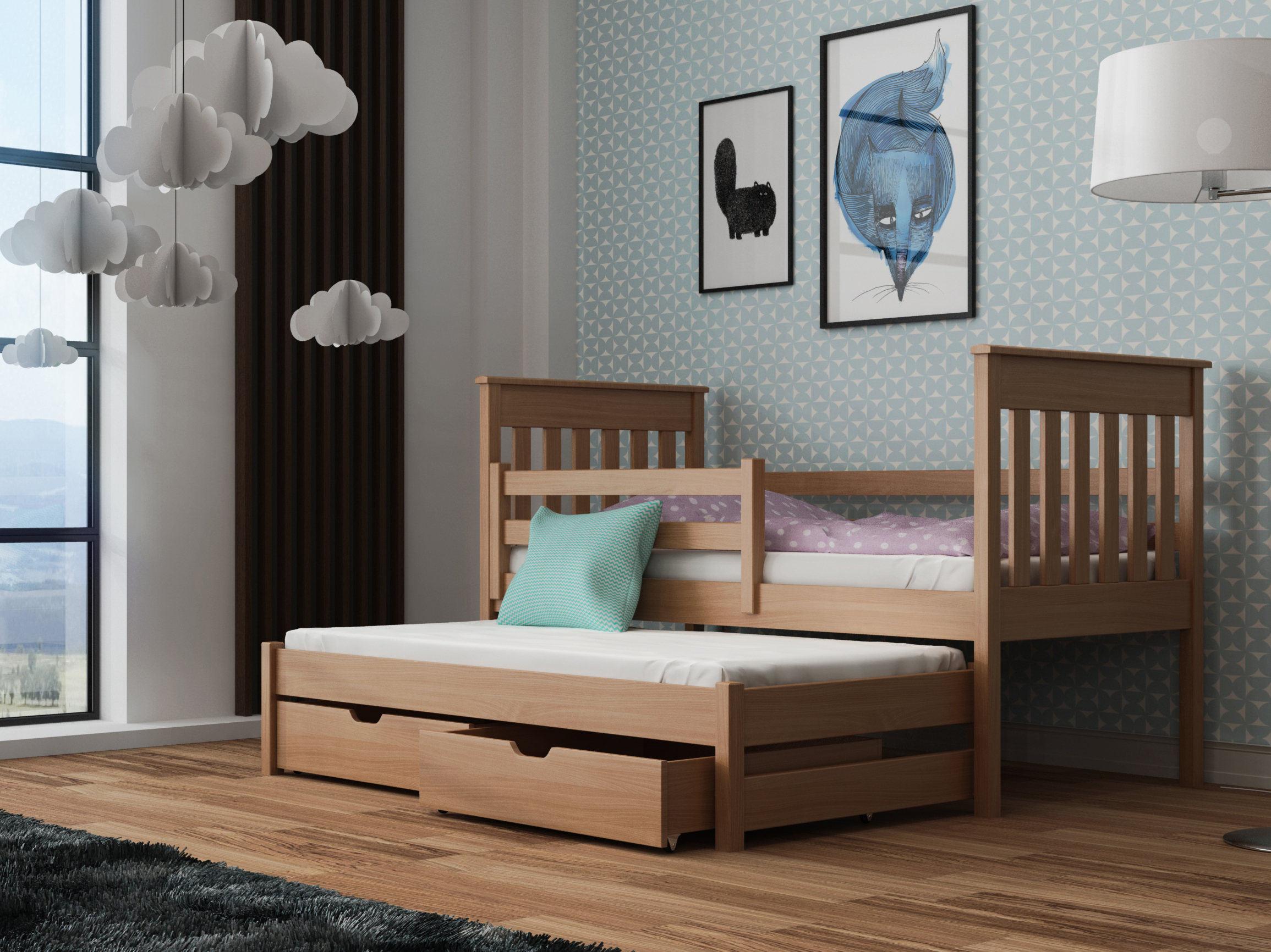 Pat pentru copii 90 cm TOYA (cu somieră și sp. de depozitare) (fag)