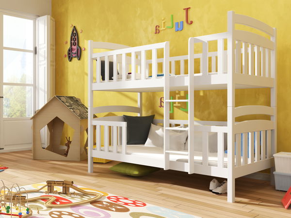 Pat supraetajat, din lemn de pin, cu bare de protecție împotriva căderii în timpul somnului. Este potrivit pentru camera copiilor. Scara patului poate fi asamblată pe partea dorită, stânga sau dreapta. Conține spațiu de depozitare sub forma a două sertare cu roți cauciucate, pentru a proteja podeaua. Se livrează dezasamblat.