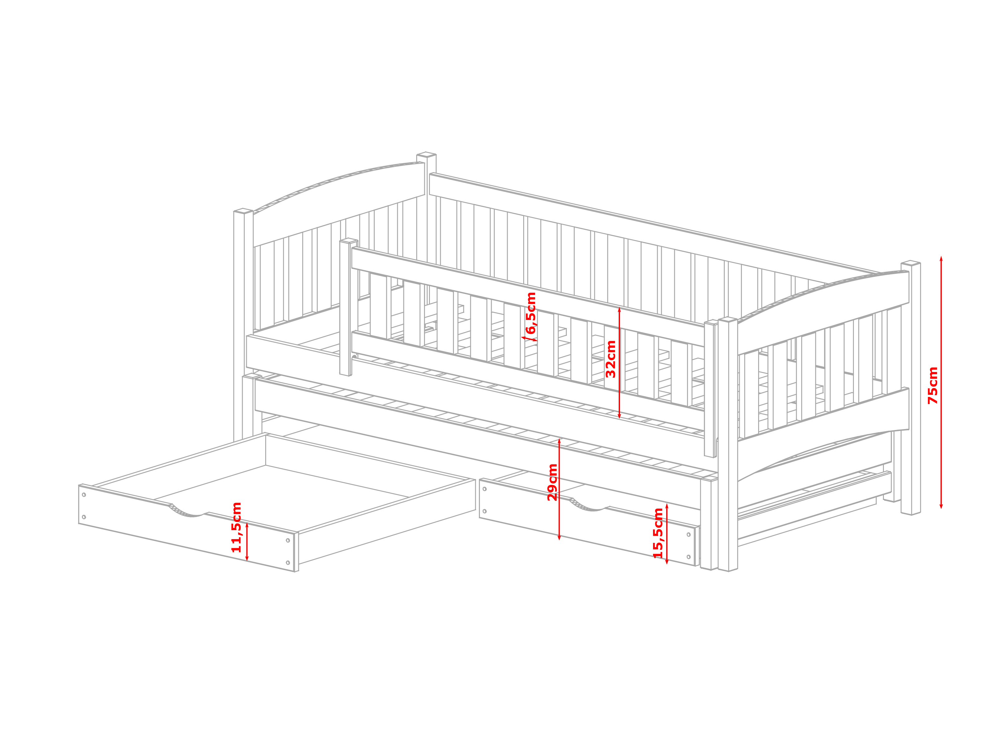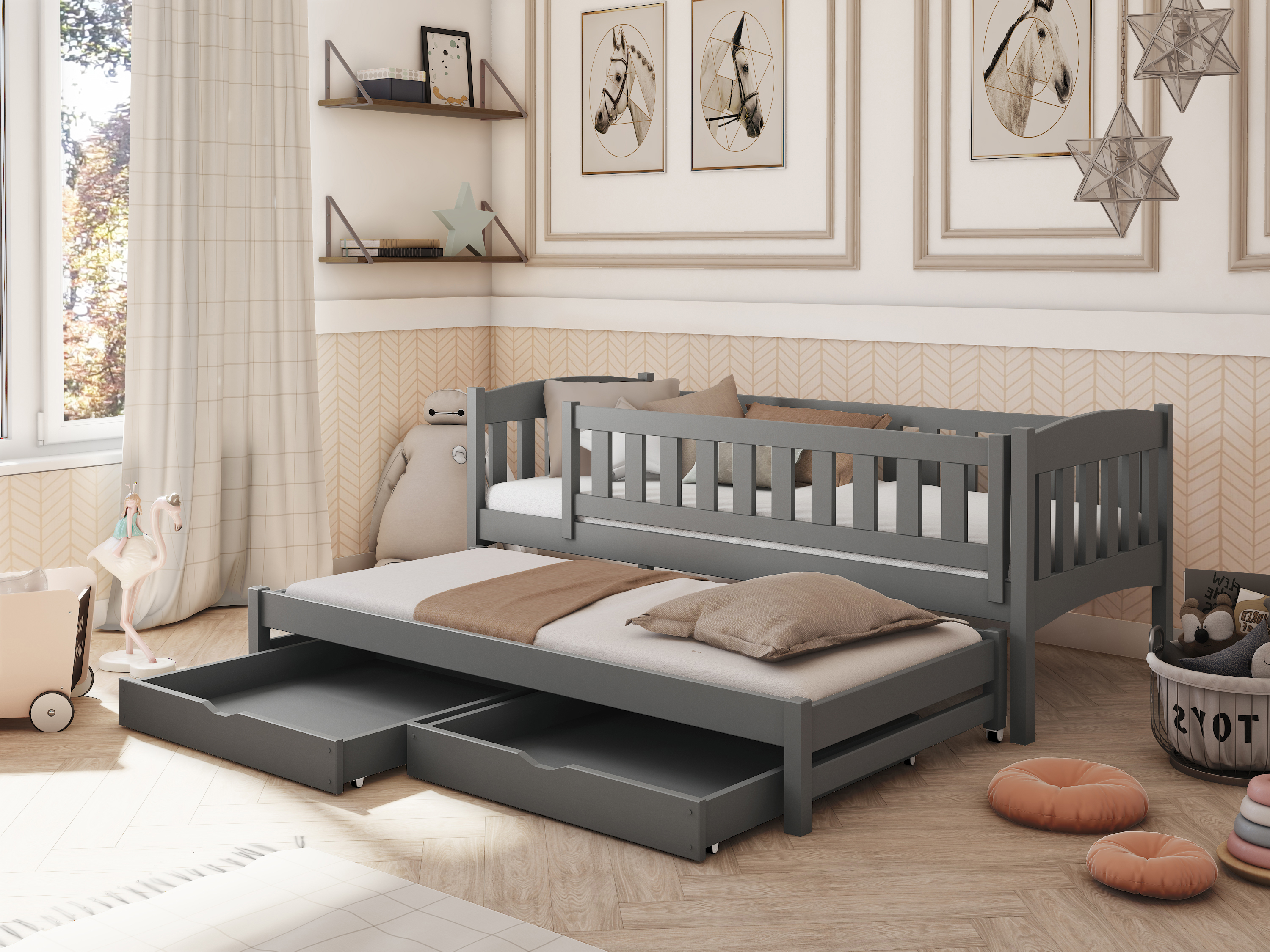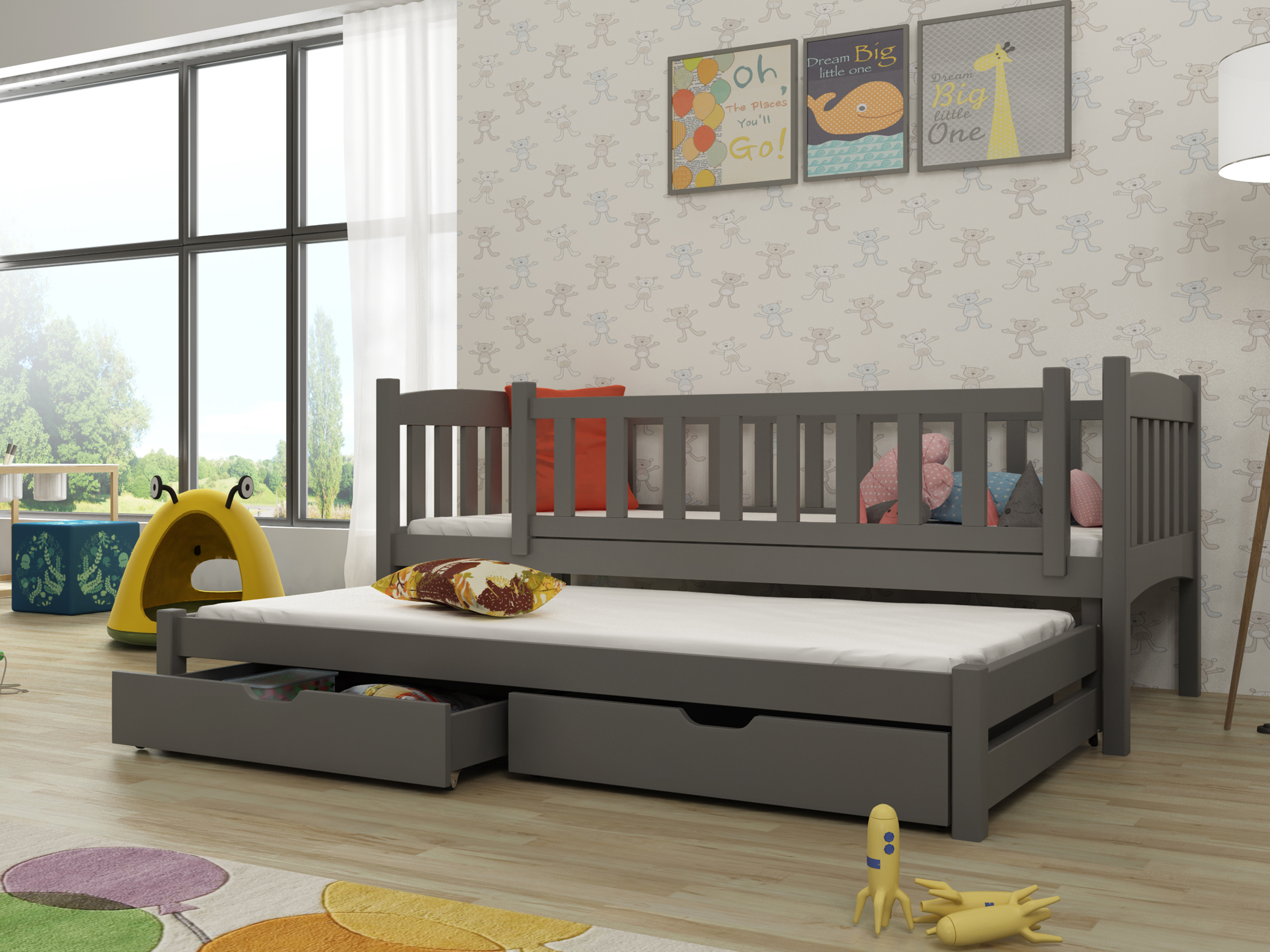 Pat pentru copii 90 x 200 cm Amalia (cu somieră și sp. depozitare) (grafit)
