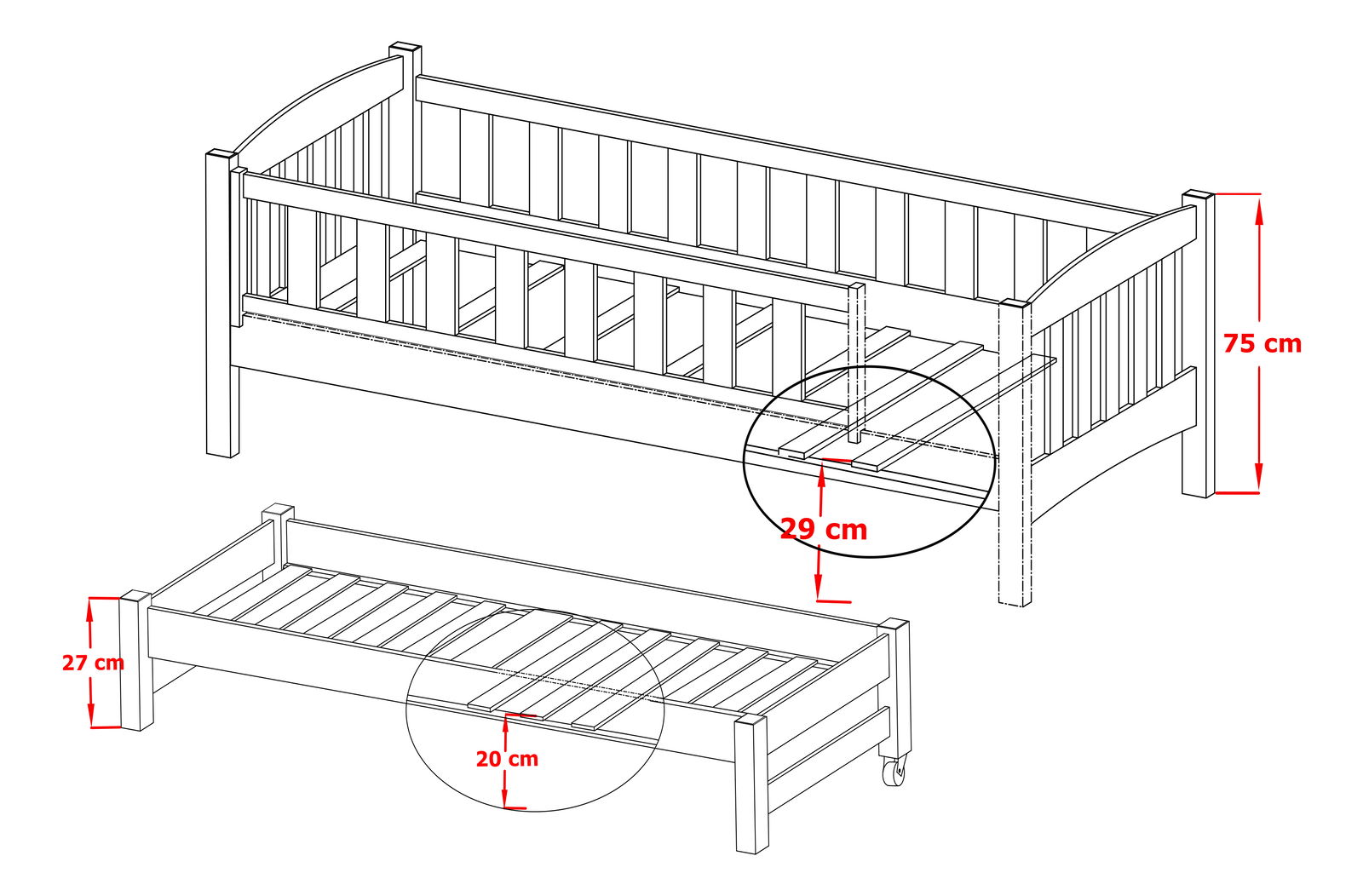 Pat pentru copii 90 x 200 cm Amalia (cu somieră și sp. depozitare) (Pin)