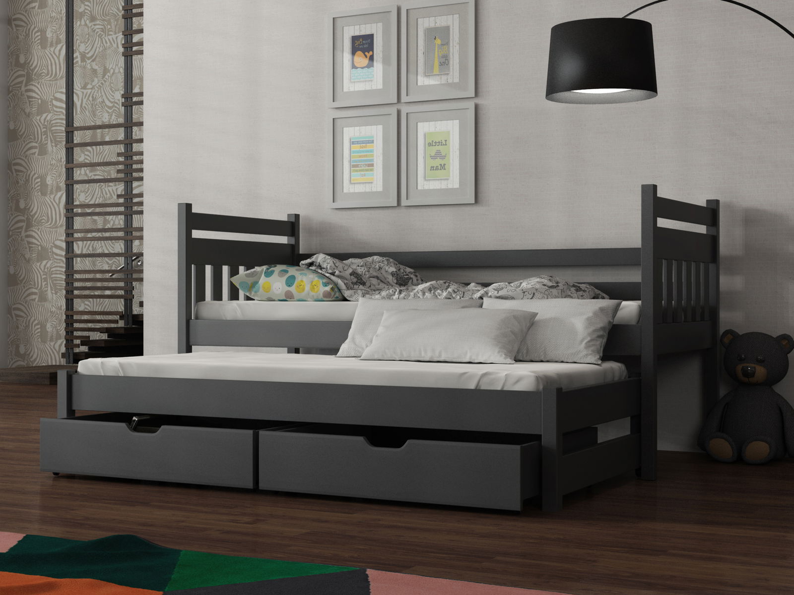 Pat pentru copii 90 x 200 cm DANNY (cu somieră și sp. depozitare) (grafit)