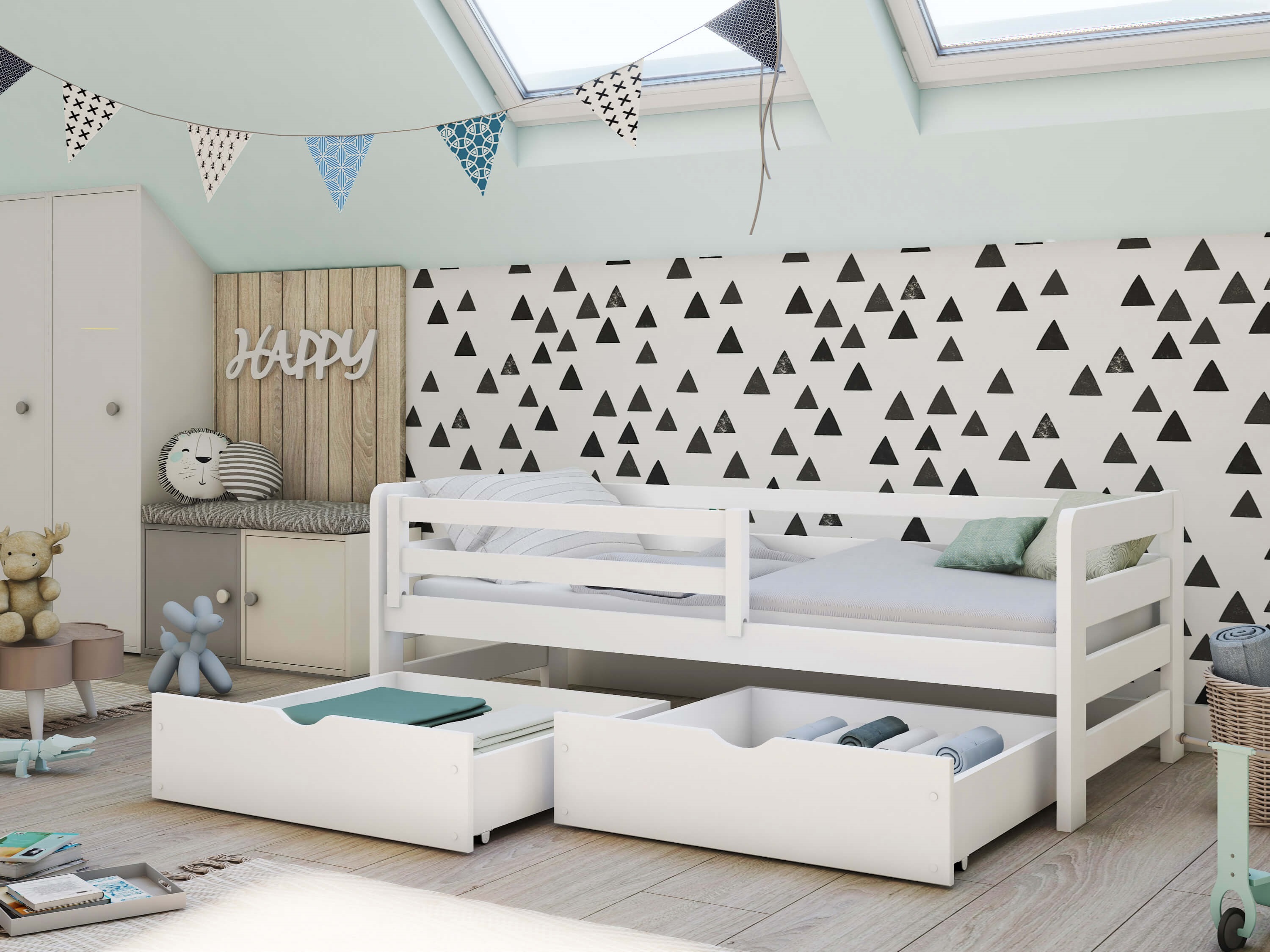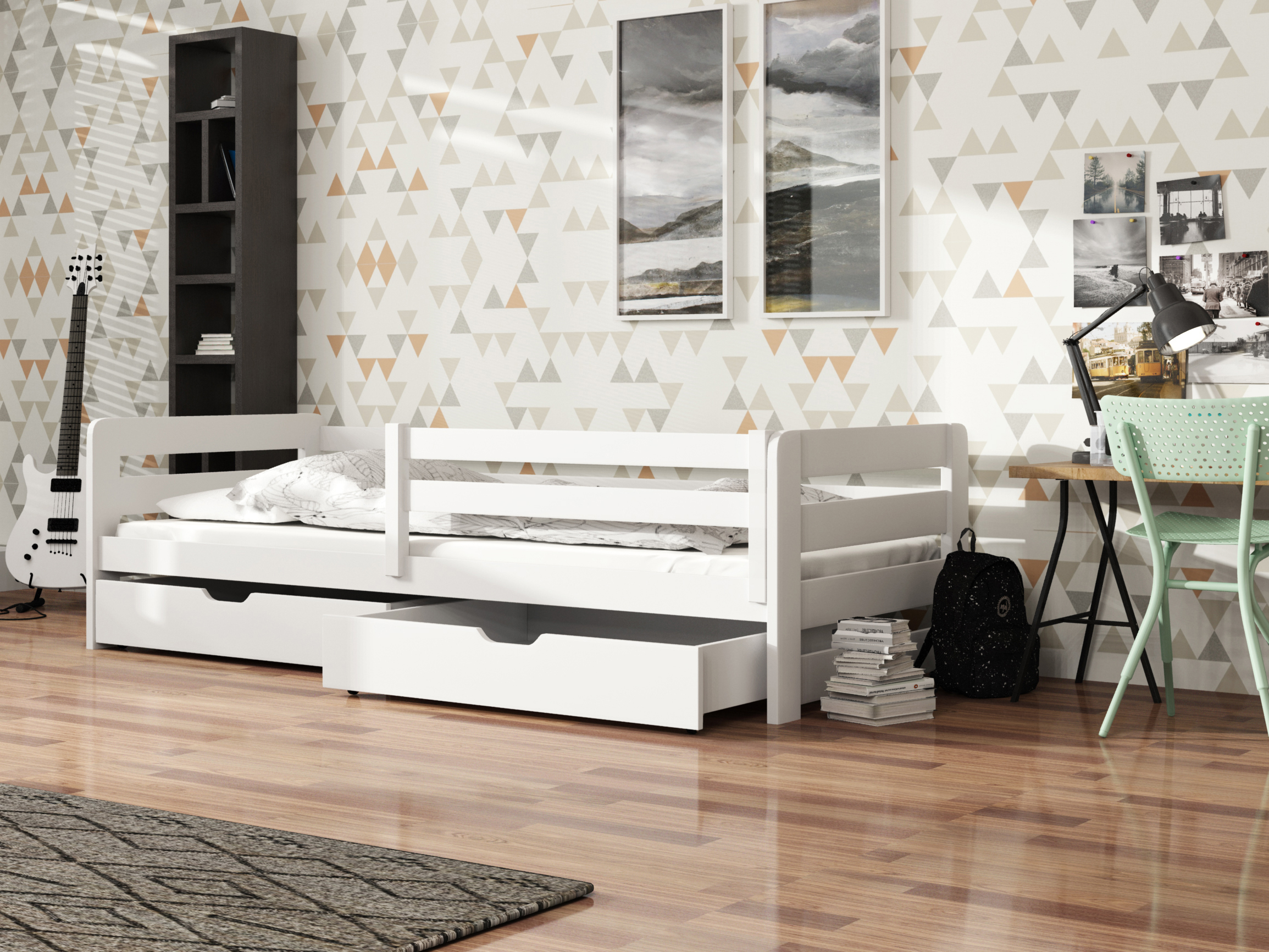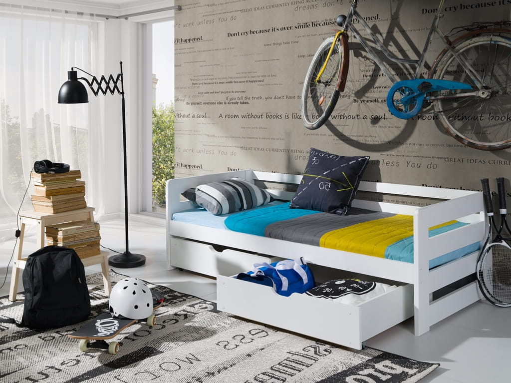 Pat pentru copii 90 x 200 cm Erin (cu somieră și sp. depozitare) (Alb)