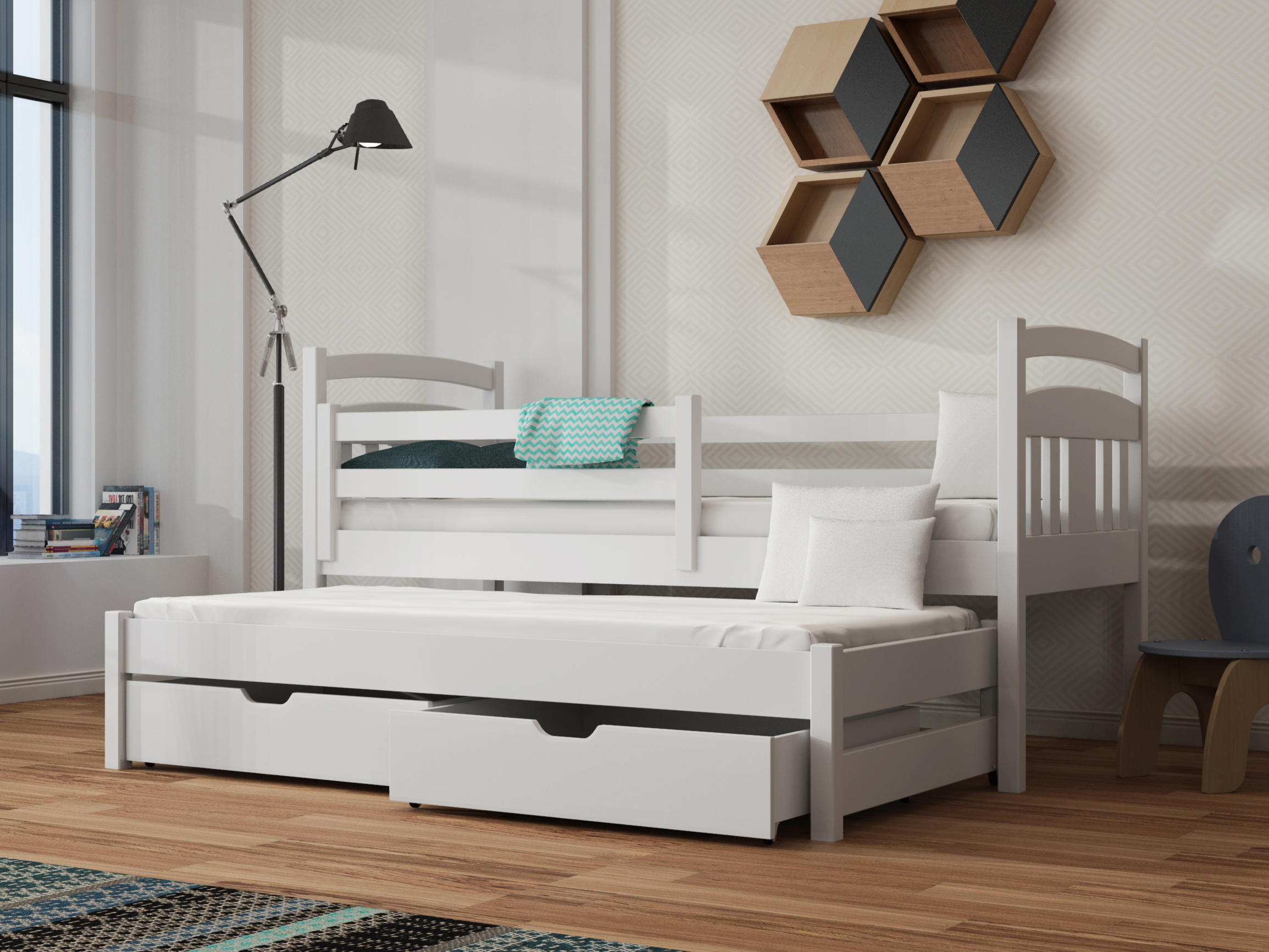 Pat pentru copii 90 x 200 cm FELTON (cu somieră și sp. depozitare) (Alb)