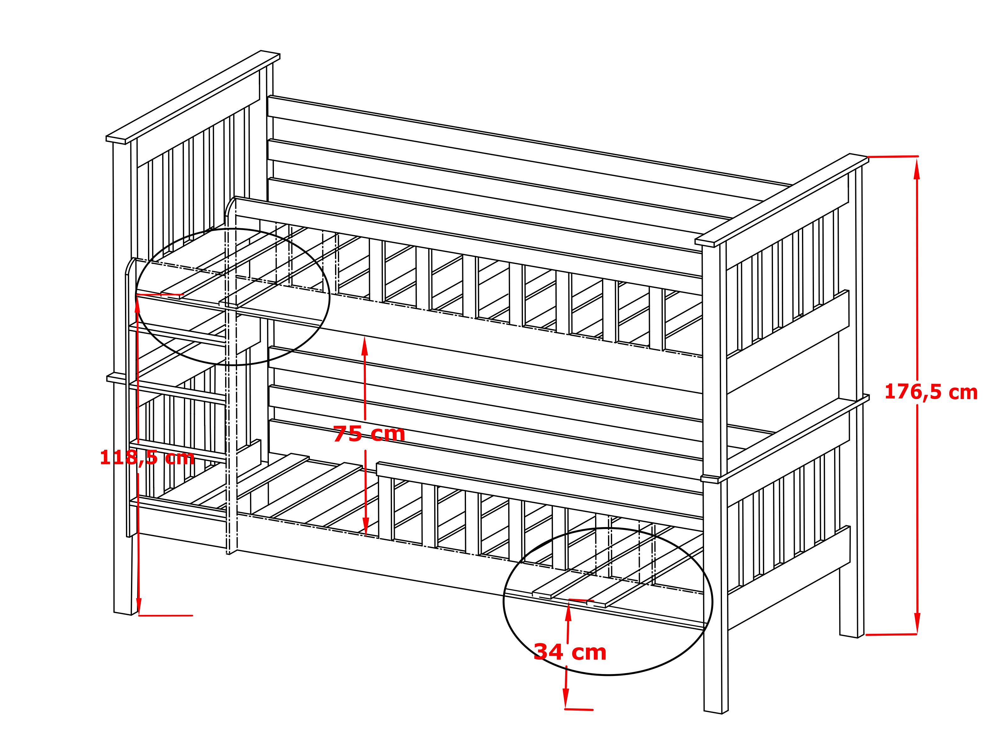 Pat supraetajat cu bare de protecție împotriva căderii în timpul somnului. Este potrivit pentru camera copiilor. Scara patului poate fi asamblată pe partea dorită, stânga sau dreapta. Conține spațiu de depozitare sub forma a două sertare cu roți cauciucate, pentru a proteja podeaua. Se livrează dezasamblat.