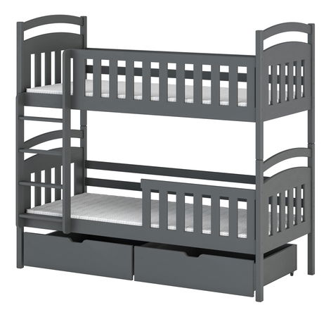 Pat supraetajat cu bare de protecție împotriva căderii în timpul somnului. Este potrivit pentru camera copiilor. Scara patului poate fi asamblată pe partea dorită, stânga sau dreapta. Conține spațiu de depozitare sub forma a două sertare cu roți cauciucate, pentru a proteja podeaua. Se livrează dezasamblat.
