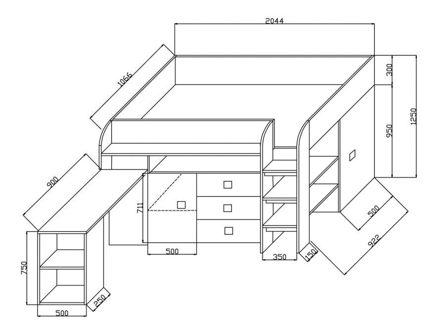 Pat pentru copii combinat 90 cm Kesa 1 (beton + stejar wotan)