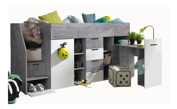 Pat pentru copii combinat 90 cm Kesa 3 (beton + alb mat) (S)