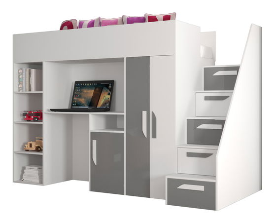 Pat pentru copii combinat 90 cm Puro 14 (alb mat + alb lucios + gri lucios)