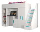 Pat pentru copii combinat 90 cm Puro 14 (alb mat + alb lucios + mânere Turcoaz)