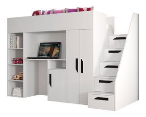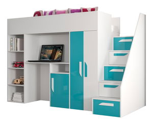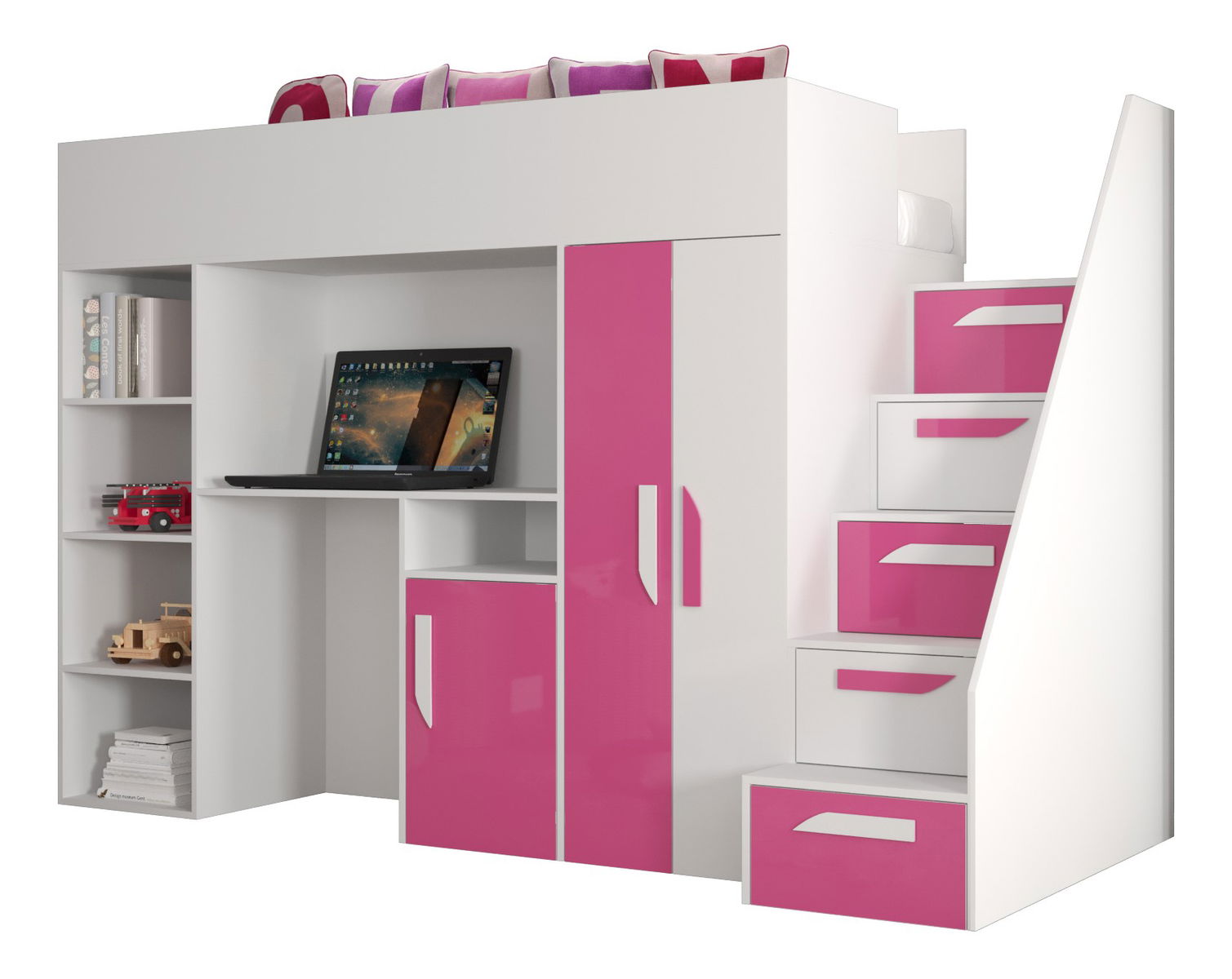Pat pentru copii combinat 90 cm Puro 14 (alb mat + alb lucios + roz lucios)