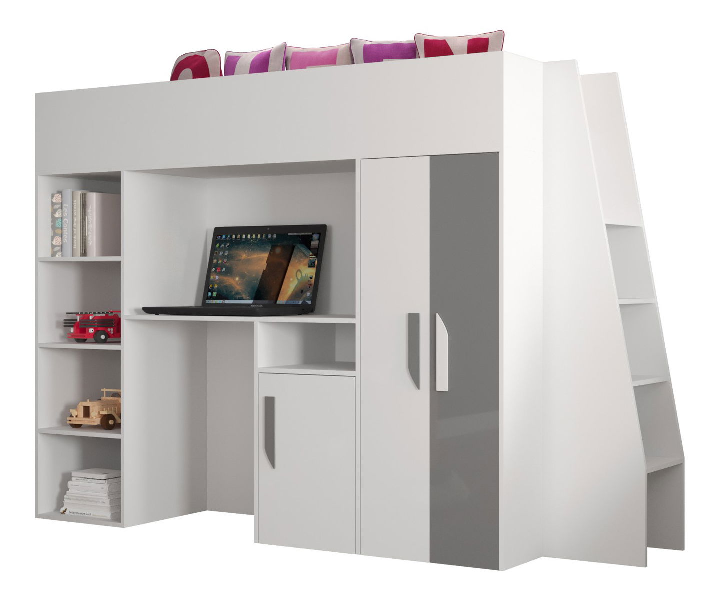 Pat pentru copii combinat 90 cm Puro 15 (alb mat + alb lucios + gri lucios)