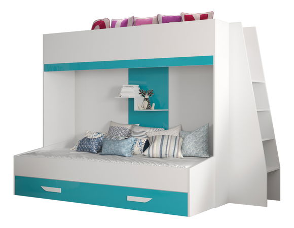 Pat pentru copii combinat 90 cm Puro 17 (alb mat + alb lucios + Turcoaz lucios)