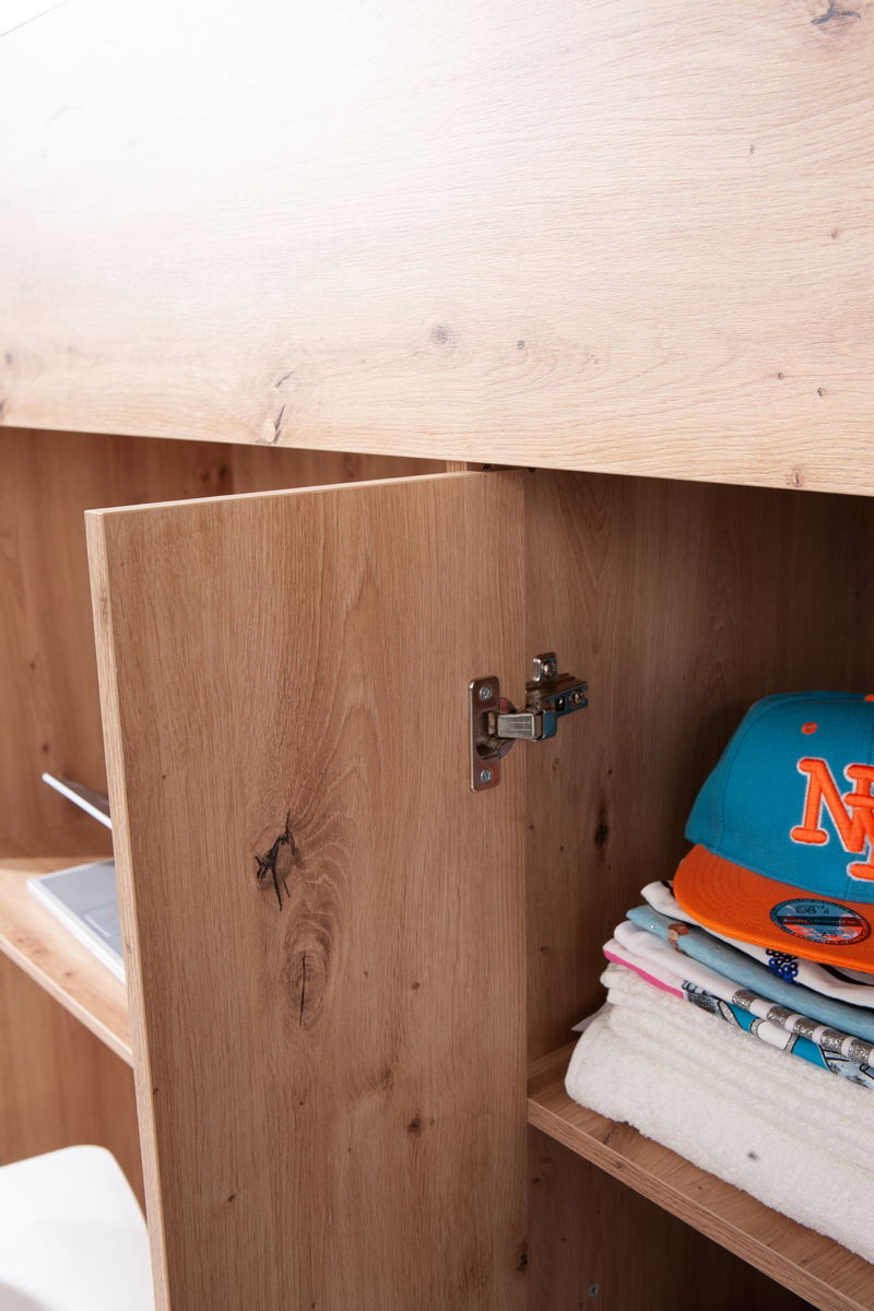 Pat pentru copii combinat 90 cm Sami 14 (Stejar artisan + negru mat + mânere albe)