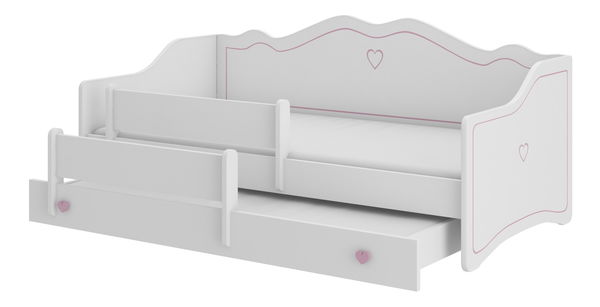 Pat pentru copii, extensibil160x80 cm Ester II (cu somieră și saltea) (Alb + Roz)