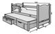 lemn de pin, mijlocul patului și tăblile sertarelor sunt din placă MDF