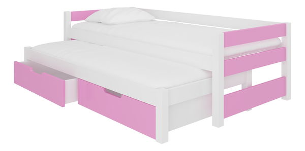 Pat pentru copii, extensibil200x90 cm Fifo (cu somieră și saltea) (Alb + Roz)