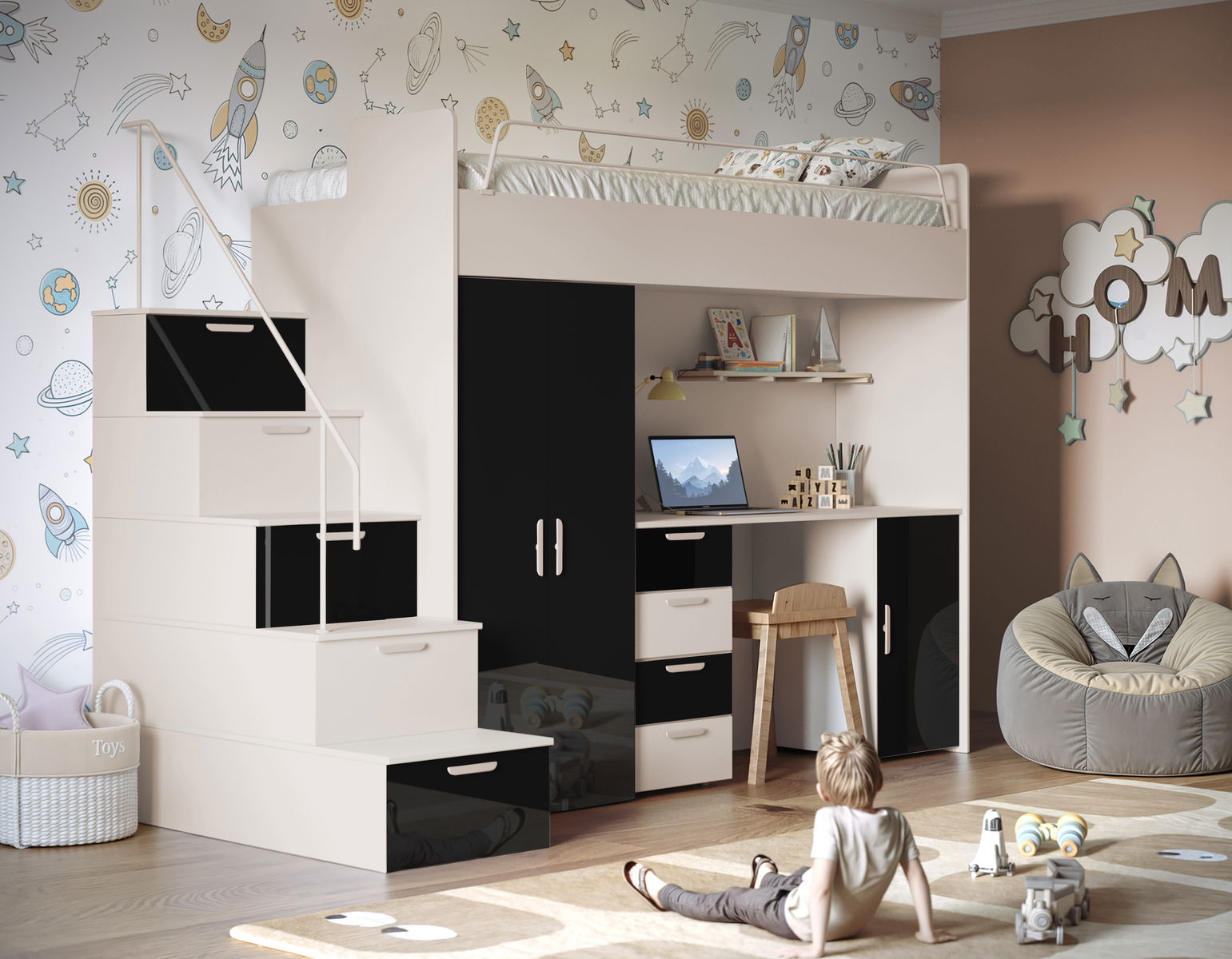 Pat pentru copii Ruby IV S (cașmir + negru lucios) (cu somiere)