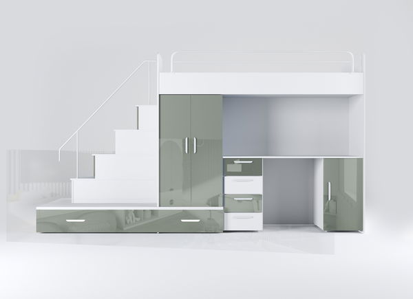 Pat pentru copii Ruby V (alb + mentă lucios) (cu somiere)