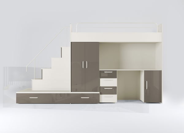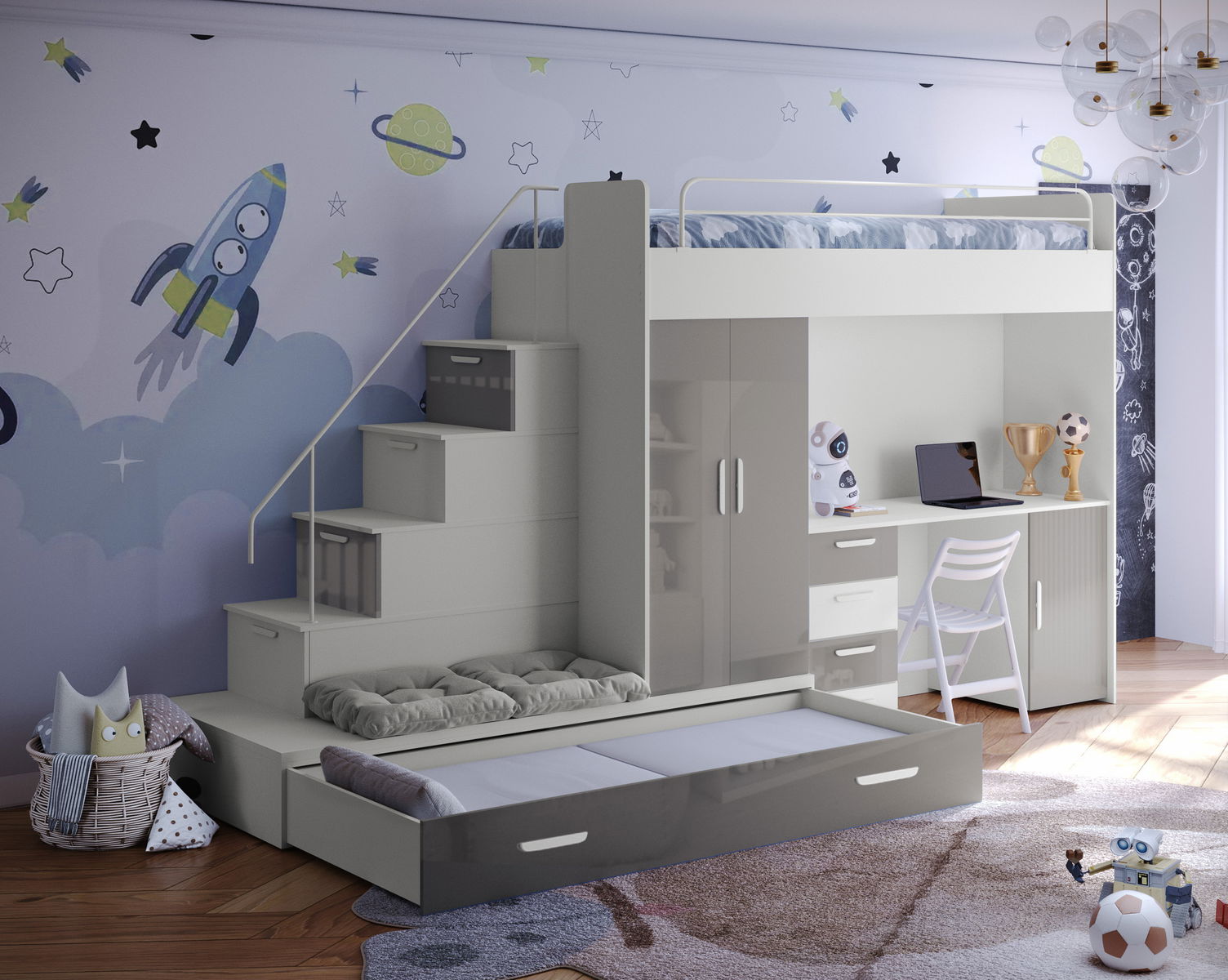 Pat pentru copii Ruby V (cașmir + gri lucios) (cu somiere)