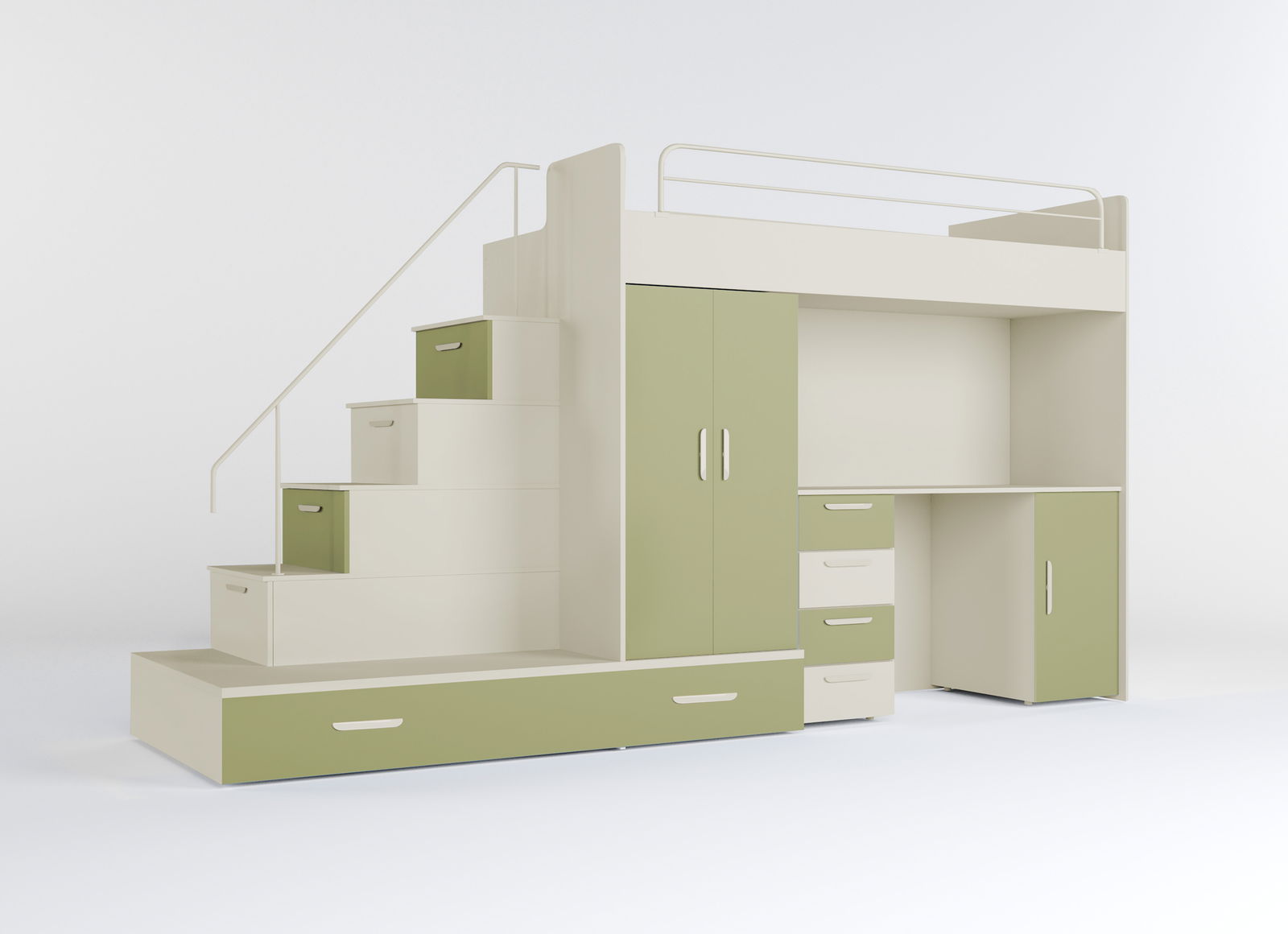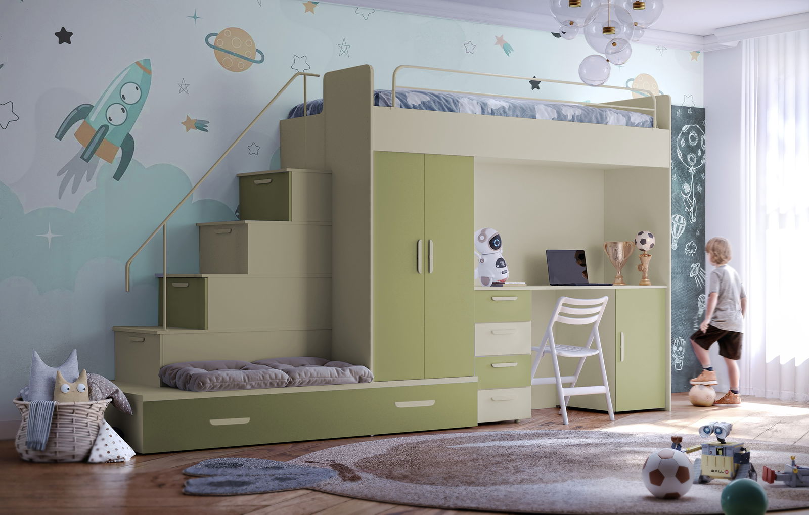 Pat pentru copii Ruby V (cașmir + măslin) (cu somiere)