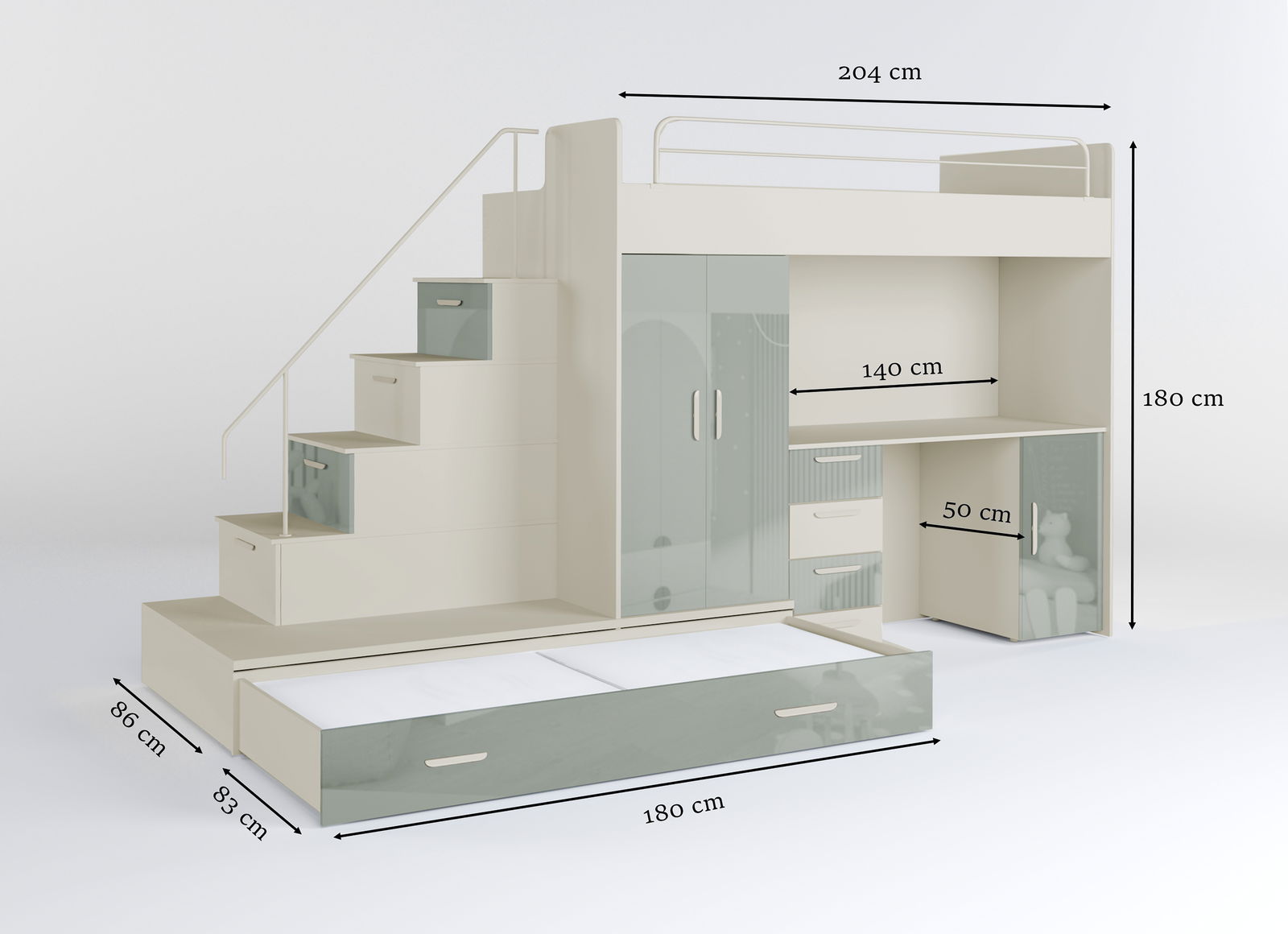 Pat pentru copii Ruby V (cașmir + mentă lucios) (cu somiere)
