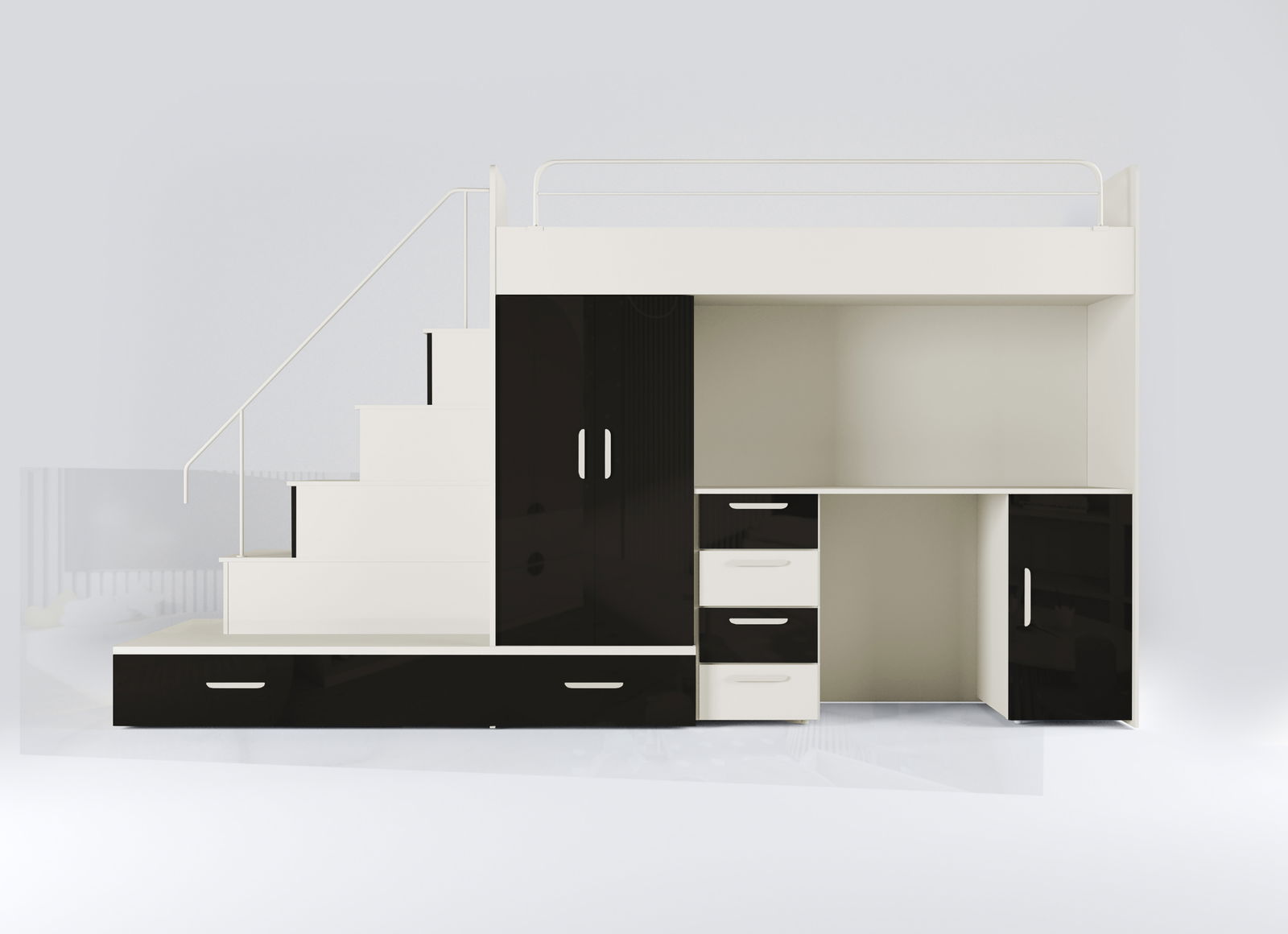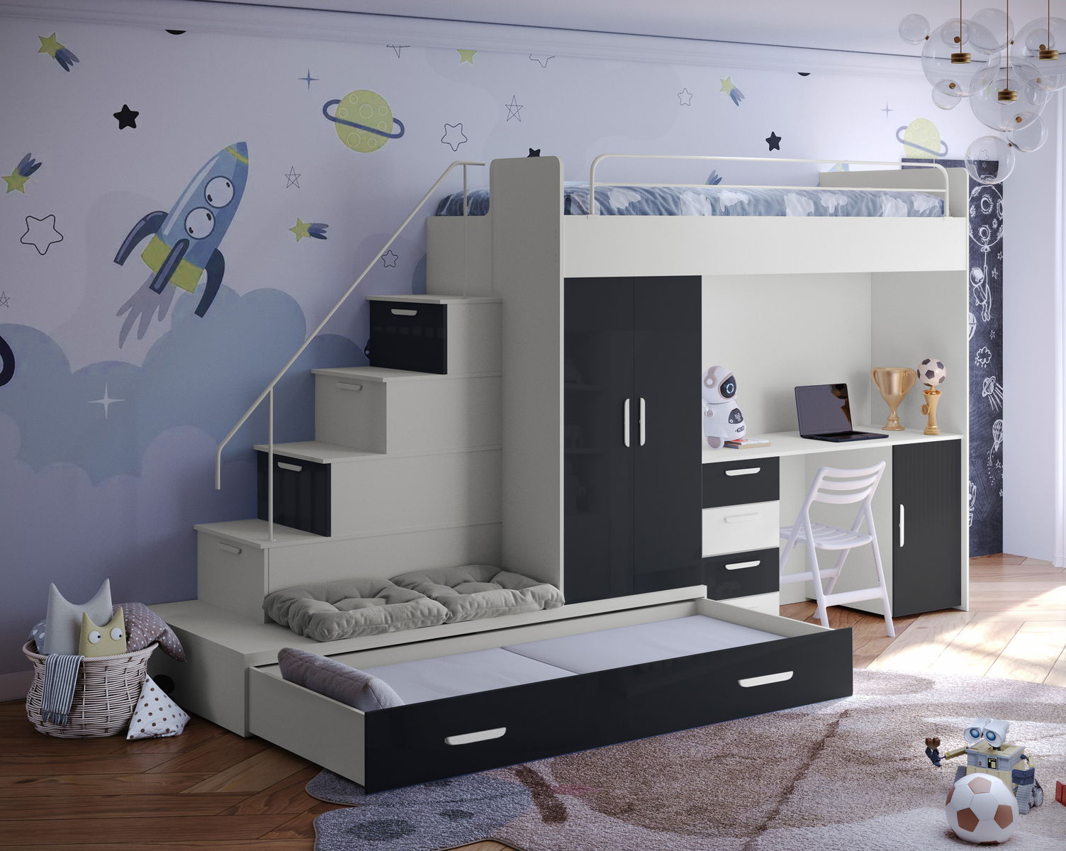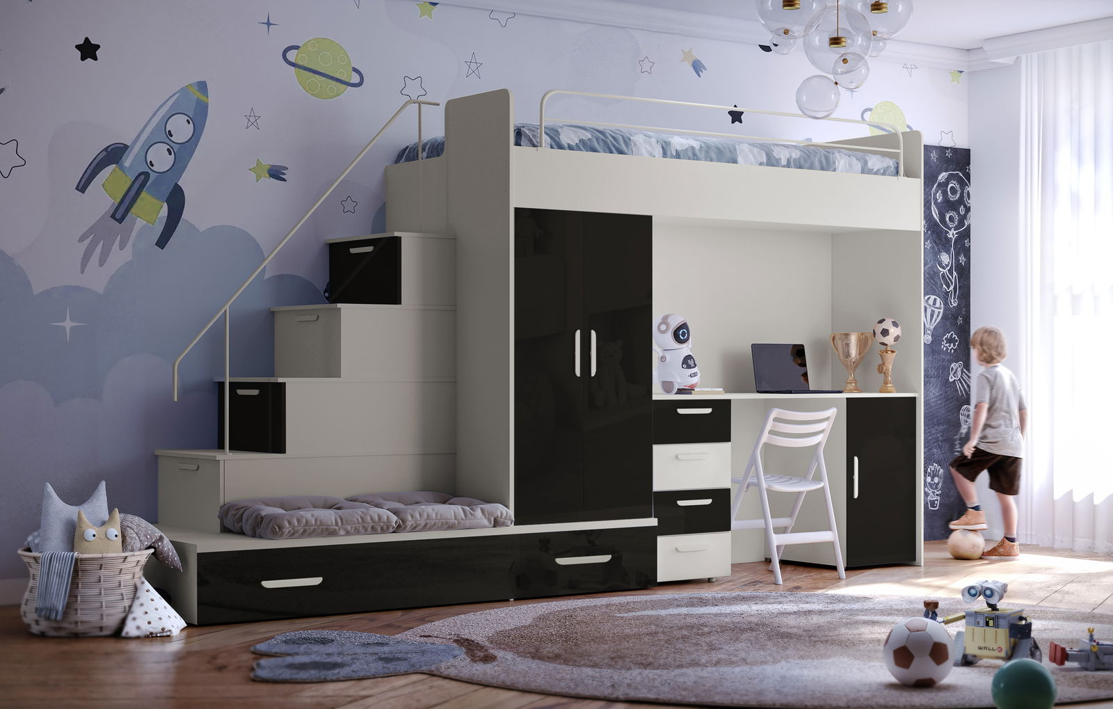 Pat pentru copii Ruby V (cașmir + negru lucios) (cu somiere)