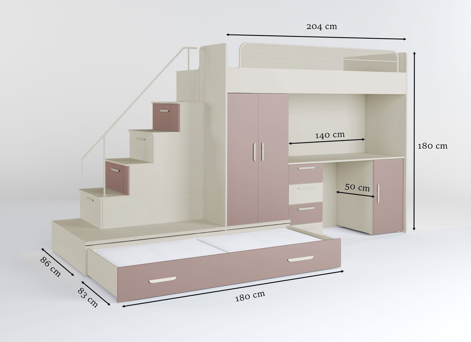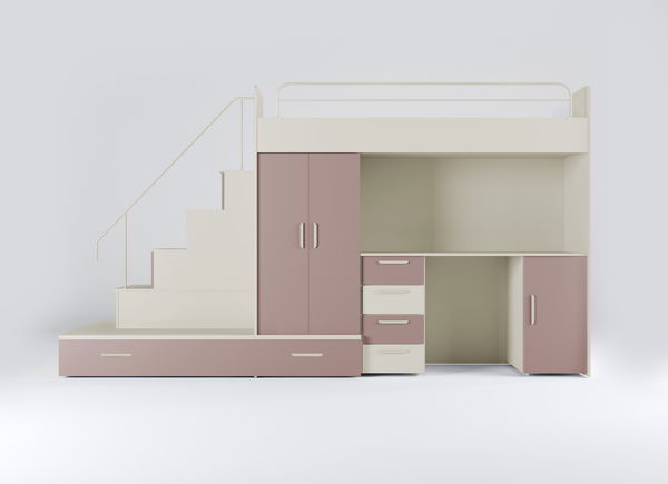 Pat pentru copii Ruby V (cașmir + roz) (cu somiere)