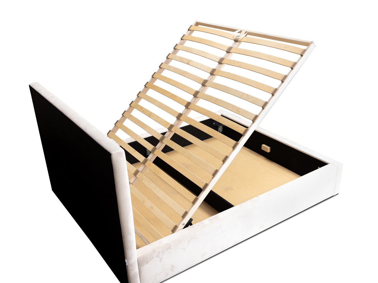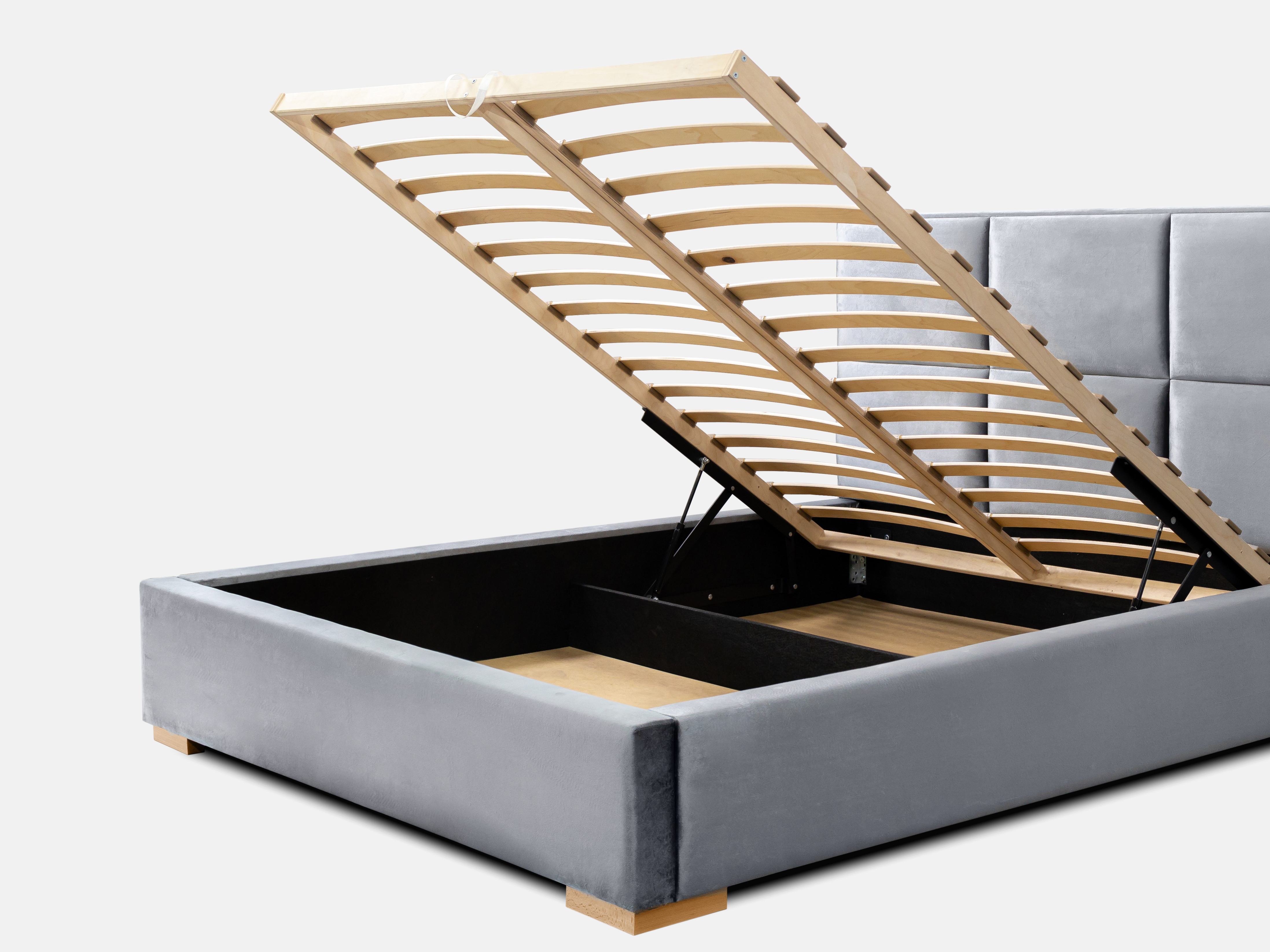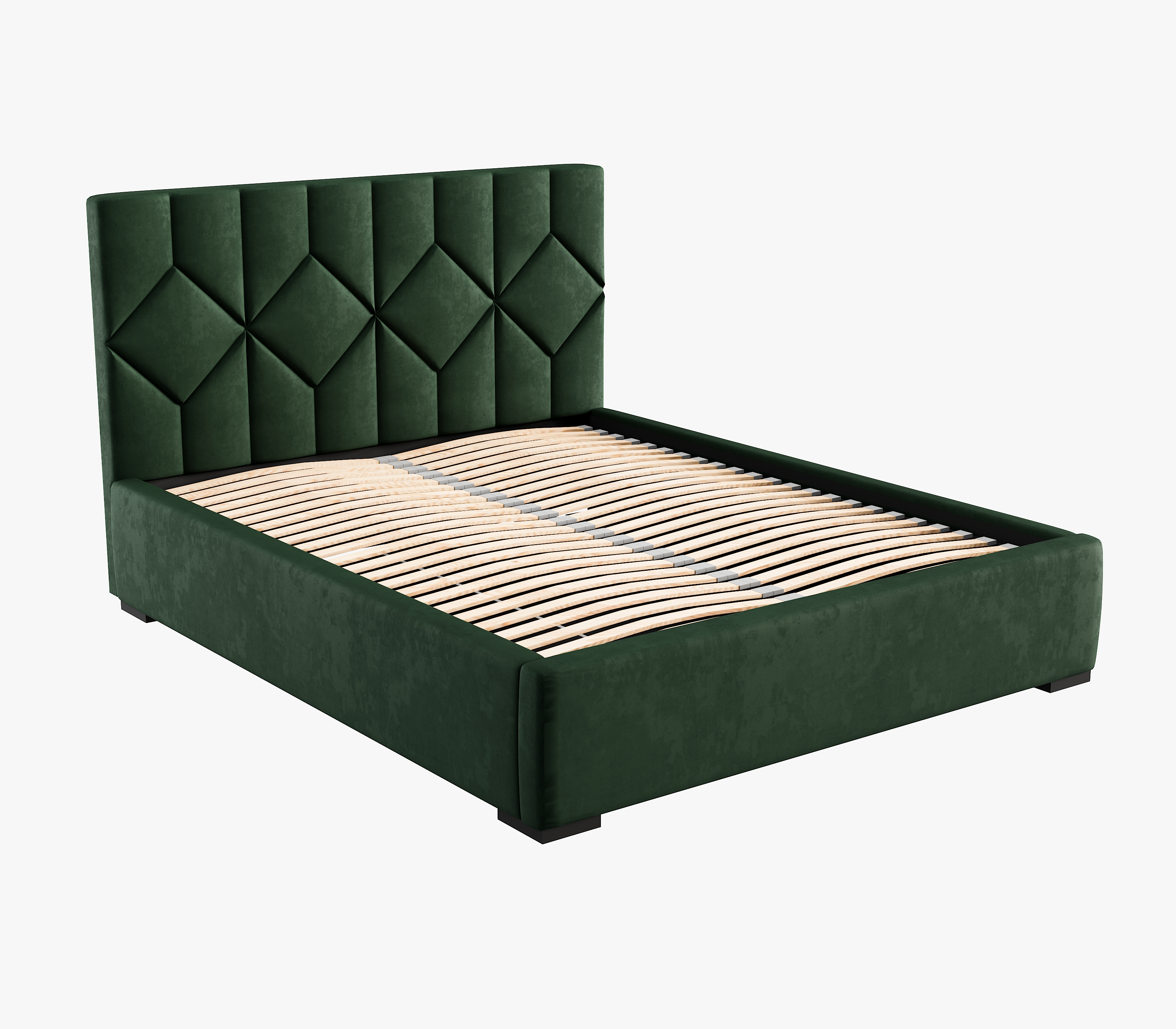 Veggie este un pat atemporal, cu o formă clasica, cu tapițerie în nuanțe frumoase. Tetiera este umplută cu material nețesut pufos, acoperit cu material de catifea. Patul conține spatiu de depozitare. Cadru solid cu construcție metalică și somieră cu șipci. Lateralele și tăblia sunt fabricate din țesătură de catifea.