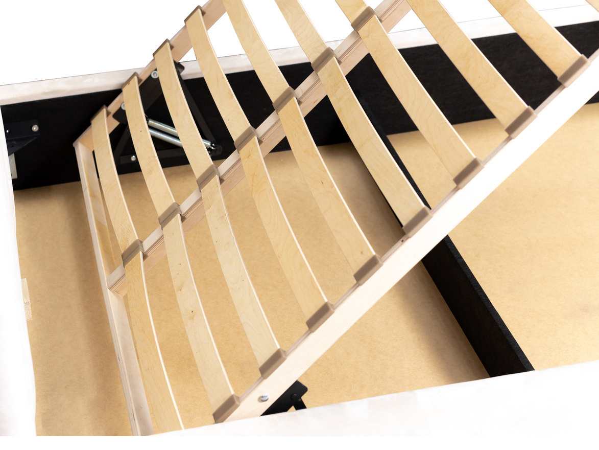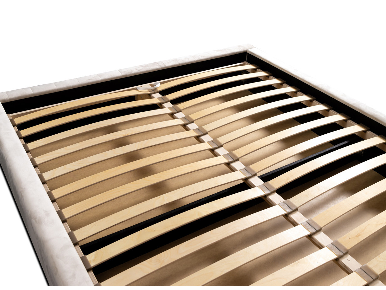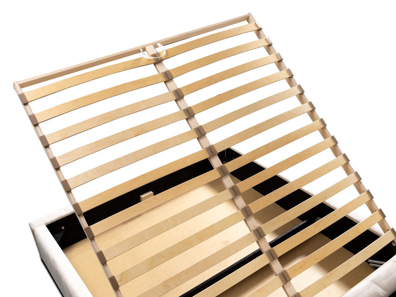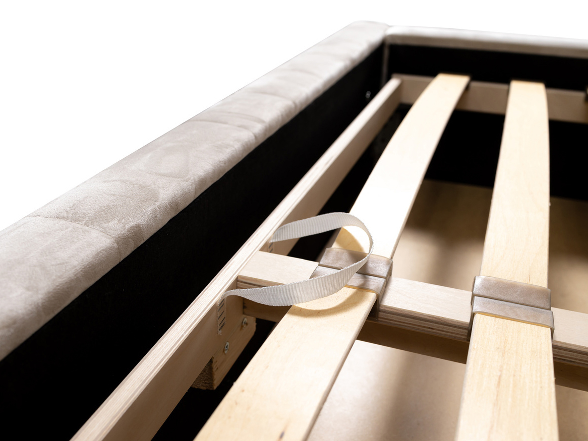 Veggie este un pat atemporal, cu o formă clasica, cu tapițerie în nuanțe frumoase. Tetiera este umplută cu material nețesut pufos, acoperit cu material de catifea. Patul conține spatiu de depozitare. Cadru solid cu construcție metalică și somieră cu șipci. Lateralele și tăblia sunt fabricate din țesătură de catifea.