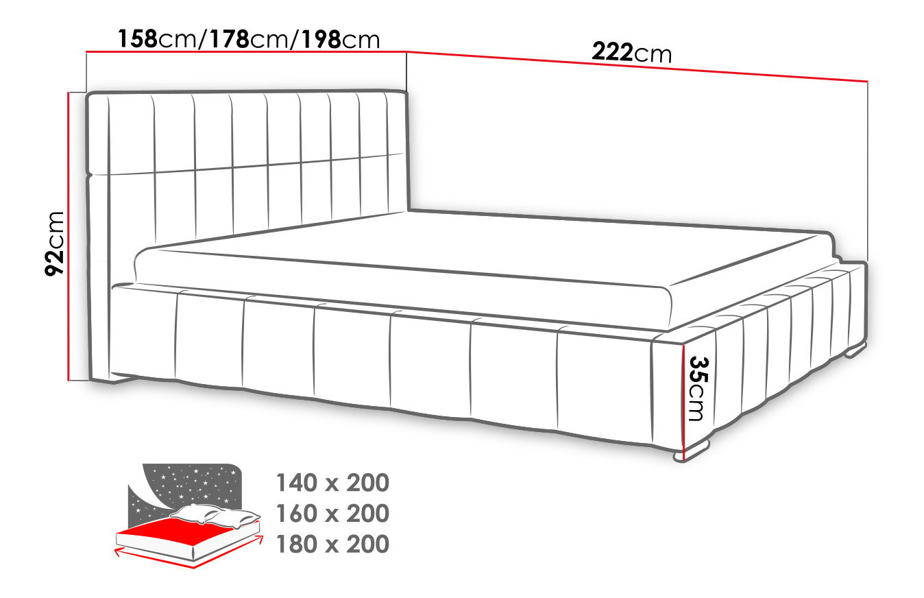 Pat tapițat cu sp. depozitare Mikael (160x200) (Rico 1)