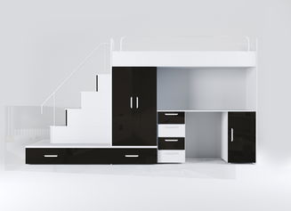 Pat pentru copii Ruby V (alb + Galben) (cu somiere)