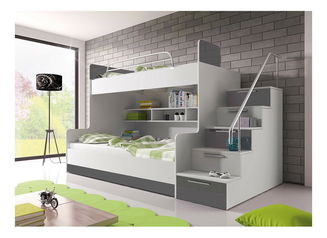 Pat supraetajat Ruby II (alb + violet) (cu somiere și saltele)