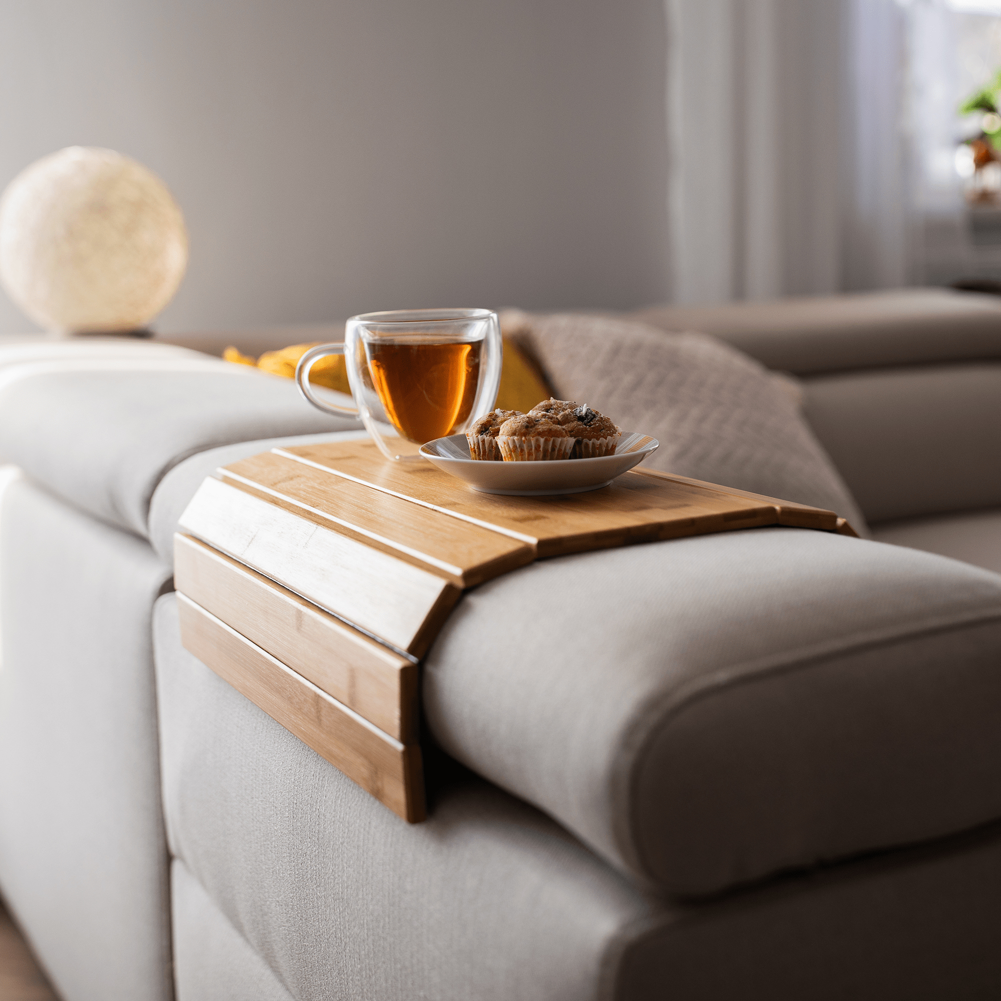 Suport practic Alton pentru plasarea unei cești de cafea a unui pahar sau a unei gustări mici. Poate fi plasat și pe cotiera unui fotoliu sau a canapelei sau deasemenea ca și cotieră. Suportul este flexibil și suficient de puternic. Este fabricat din bambus lăcuit, lipit cu pâslă. Suportul Alton este soluția perfectă pentru relaxul dorit.