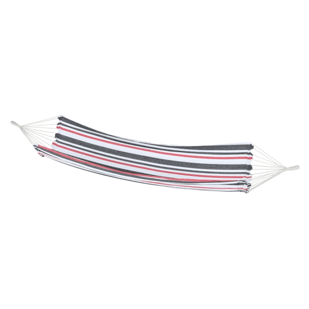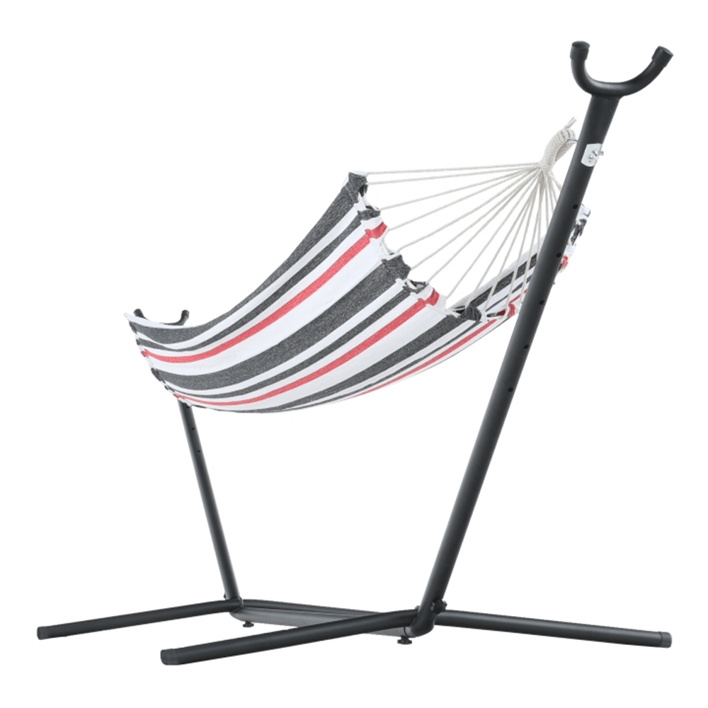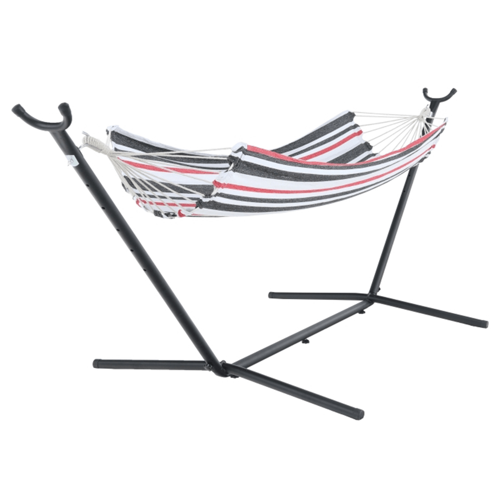 Realizat din 65% bumbac și 35% țesătură din poliester. Într-un design plăcut, cu un model dungi. Capacitatea sa de încărcare este de până la 120 kg. Este potrivit și pentru două persoane. Hamacul poate fi fixat pe o pereche de copaci sau să fie agățat de o structură specială, permițându-i să fie folosit și în interior. Un suport selectat corespunzător va crește capacitatea de încărcare și stabilitatea hamacului. Stabilitatea și greutatea sunt determinate și de alegerea corectă a stativului. Stativul OTAN TYPE 1 din oferta noastră are o construcție solidă, în timp ce relaxarea în hamac vă oferă un sentiment de securitate și siguranță.