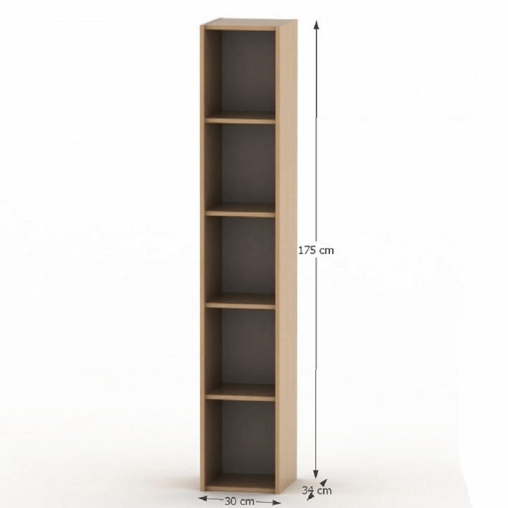 Raft îngust cu polițe își găsește utilizarea în birourile mai mici cu spațiu insuficient. Raftul dispune de cinci spații de depozitare, care separă patru polițe. Versiunea color de fag.