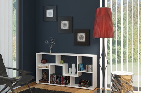 AfișeazăSoluția eficientă și spațiului de depozitare în camera de zi este oferită de raftul larg Domino B. Aceste este potrivit pentru modernizarea camerei de zi, dormitorului sau biroului. se livrează pe versiunea color de alb.