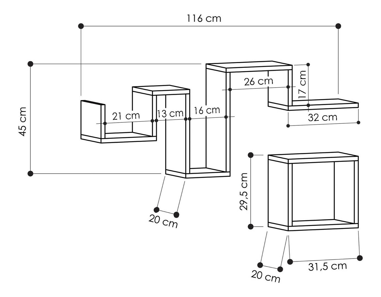 dimensiuni raft larg: lățime: 116 cm înălțime: 45 cm adâncime: 20 cm