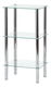 Raft elegant pentru depozitarea obiectelor mici sau a decorațiunilor. Este potrivit pentru camere de zi moderne sau birouri. Cadrul raftului este cromat, iar rafturile sutn fabricate din sticlă transparentă. Raftul are treri polițe pentru depozitare.